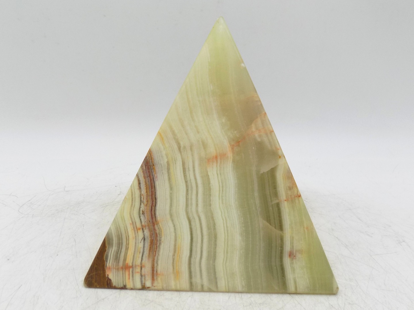Starożytni Egipcjanie doskonale rozumieli moc geometrycznej formy piramidy. Dla nich było to centrum mocy, zbierające energię z otaczającego wszechświata i koncentrujące ją w jednym punkcie - wierzchołku piramidy. Ta konkretna piramida z onyksu, ukazująca na zdjęciach swoje niedoskonałości, wnosi do współczesnego świata wiarę w ducha i starożytną wiedzę.