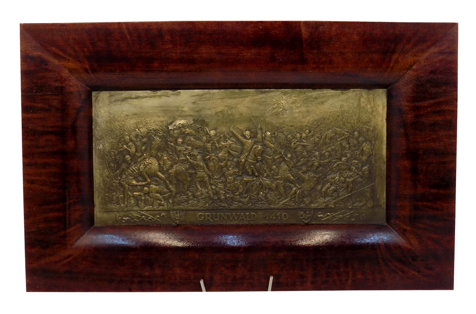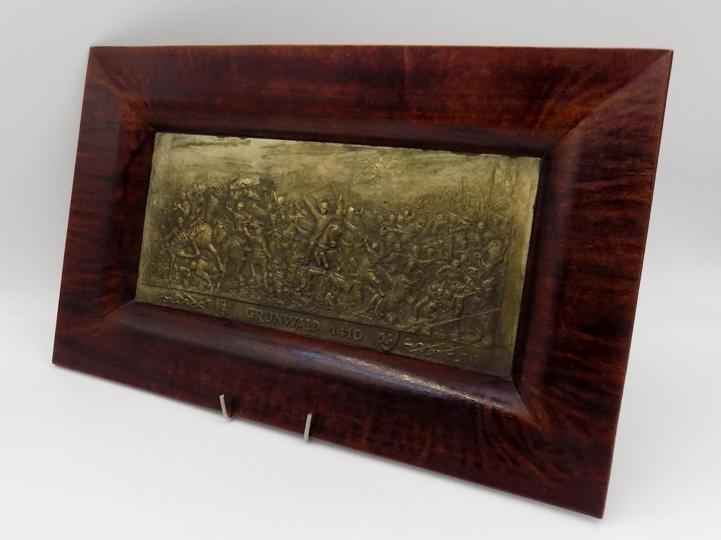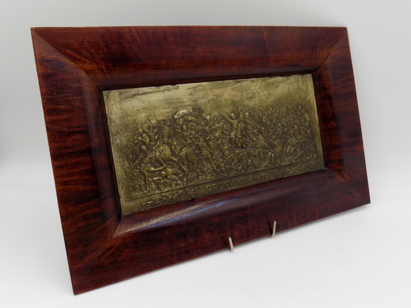 Wymiary plakiety to wysokość 24,5 centymetra i szerokość 40 centymetrów, co sprawia, że jest to idealny rozmiar do umieszczenia na ścianie w różnych wnętrzach. Bez względu na to, czy chcesz ozdobić salon, gabinet, czy też przestrzeń biurową, plakieta GRUNWALD 1410 odlew z mosiądzu doskonale się wkomponuje.