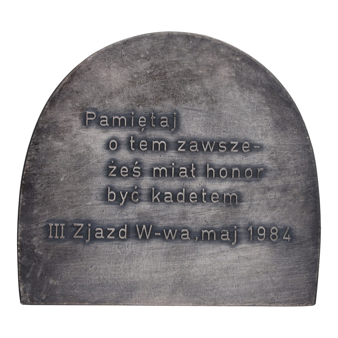 Wyjątkowa pamiątkowa plakieta "Pamiętaj o tym zawsze – żeś miał honor być kadetem" - III Kongres Warszawa 1984