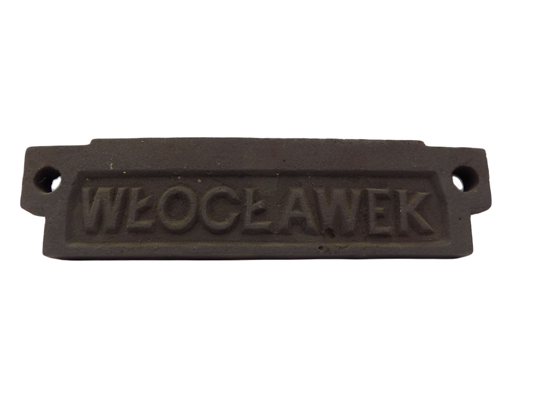 Żeliwna plakieta Włocławek prawdopodobnie z XIX w. Wymiary; 2 x 26 x 6,5 cm.