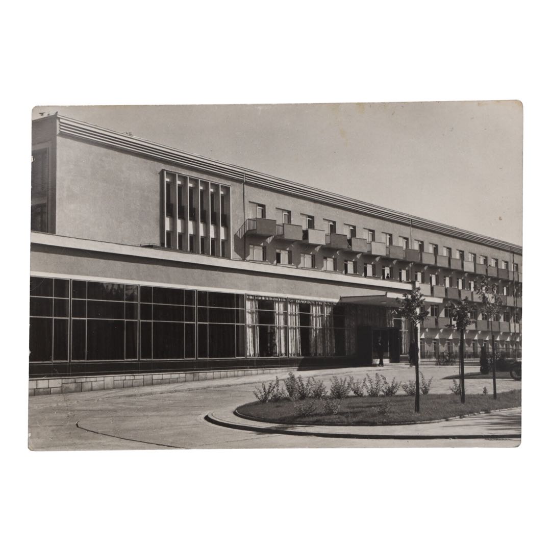 Grafika: Pocztówka przedstawia widok Sanatorium Wojskowego, uchwycenie detali architektonicznych i otoczenia sanatorium pozwala na głębsze zrozumienie epoki komunizmu.