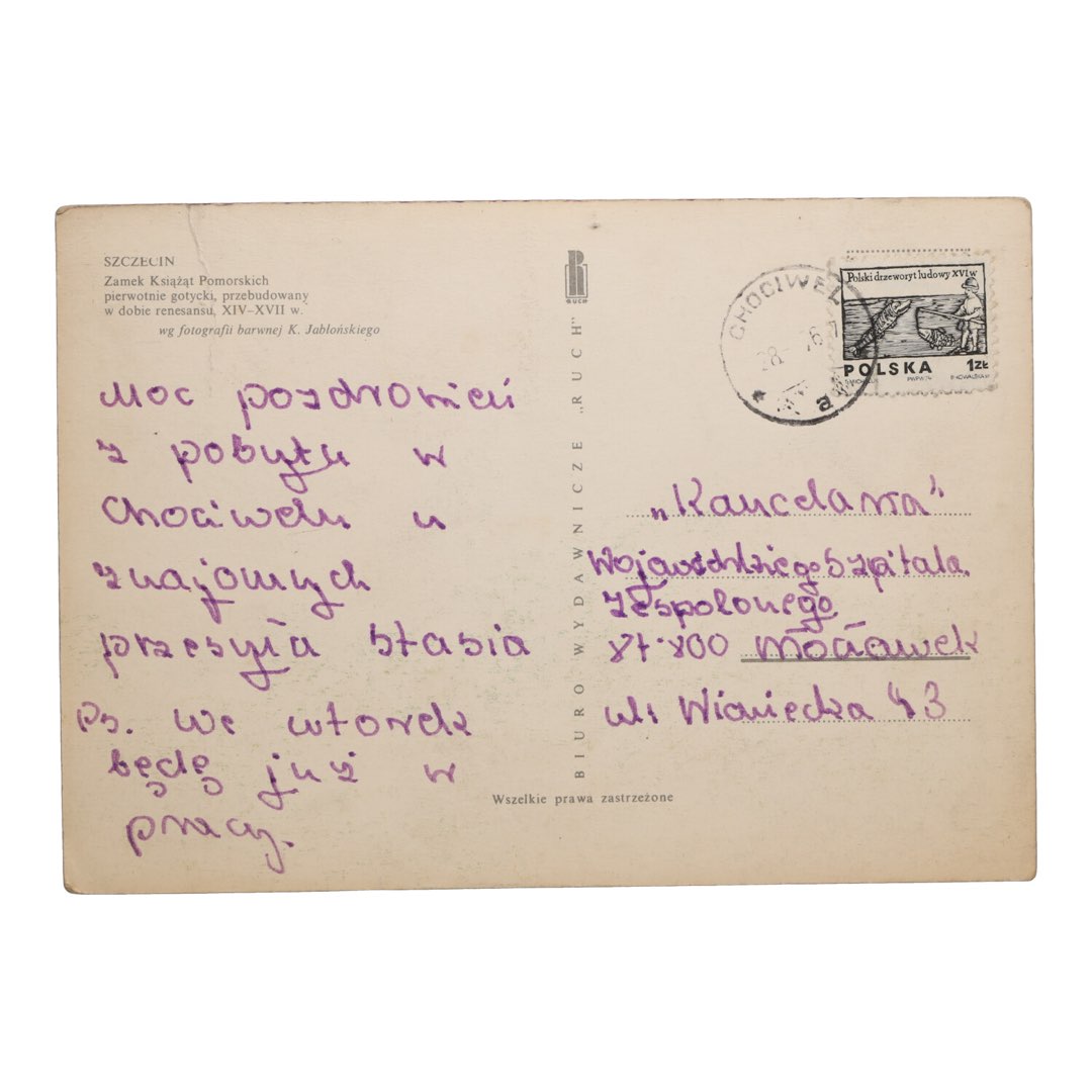 Dziedzictwo historyczne: Ta pocztówka to autentyczny dokument z 1976 roku, przenoszący do czasów PRL i przedstawiający Zamek Książąt Pomorskich w Szczecinie - ważny element polskiej historii.