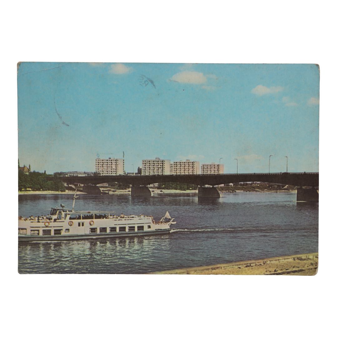 Starannie wykonana pocztówka przedstawiająca Most Śląsko-Dąbrowski w Warszawie z czasów PRL.