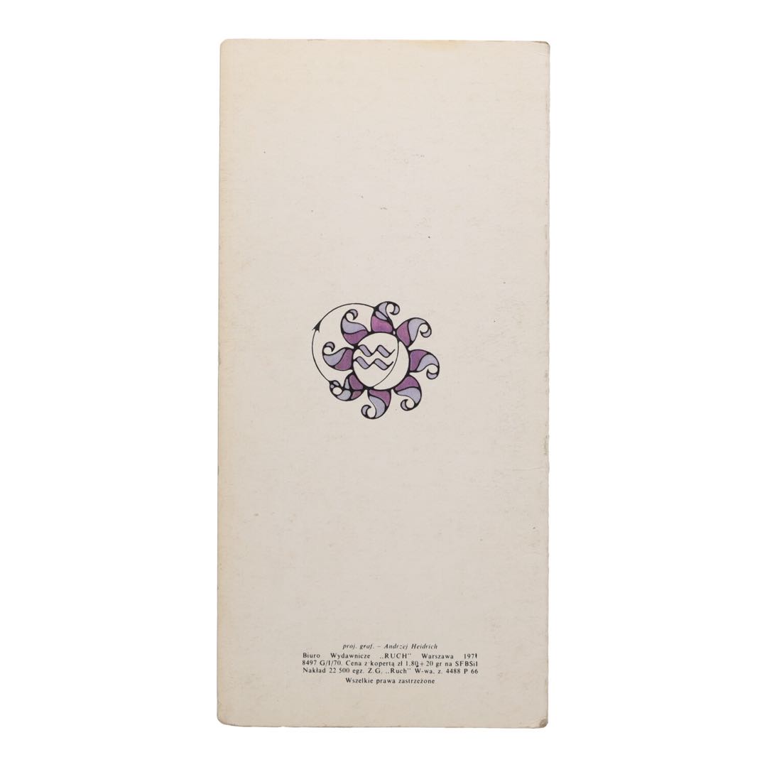 Zachwycający kawałek historii i sztuki, ta pocztówka z epoki PRL, ozdobiona znakiem zodiaku Wodnik, jest dziełem cenionego artysty Tadeusza Kubiaka. Wydana przez warszawski "Ruch" pocztówka odzwierciedla nie tylko tendencje estetyczne swoich czasów, ale także dynamikę kulturową i społeczną PRL.