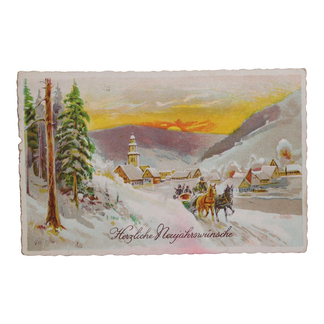 Pocztówka świąteczno-noworoczna Damnitz Damnica Leslau - unikalny przedmiot z historii