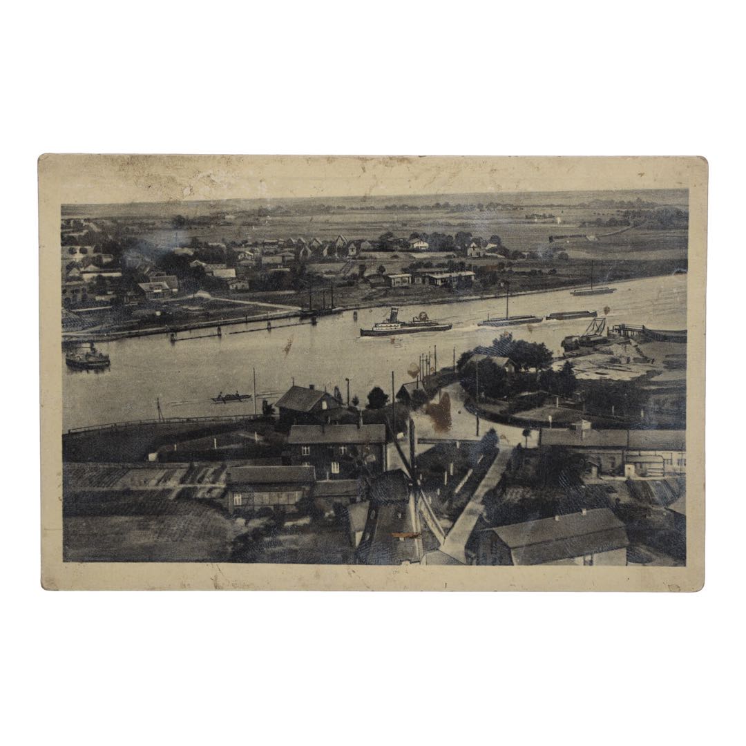 Prezentujemy niezwykle rzadką i historyczną pocztówkę ze Szlezwiku-Holsztynu, przedstawiającą malowniczy widok na Północny Kanał Bałtycki w Hochdonn, pochodzącą z czasów II wojny światowej. Jest to wyjątkowy przedmiot, który wzbogaci każdą kolekcję i doda historii każdemu wnętrzu.