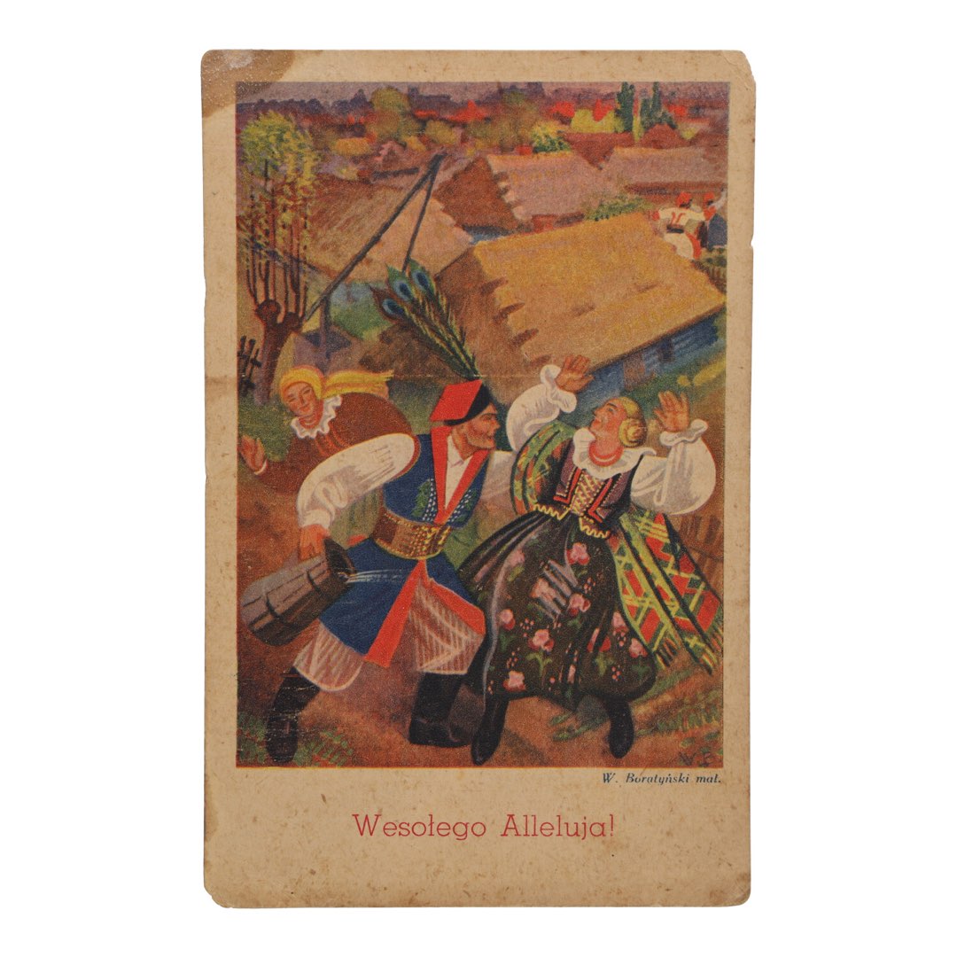 Nasz antykwariat skrywa niezwykłą pamiątkę - oryginalną pocztówkę wielkanocną autorstwa W. Boratyńskiego z życzeniami "Wesołego Alleluja". Ta piękna pocztówka to prawdziwy skarb dla miłośników kultury i historii, przenoszący nas do czasów, gdy życzenia wielkanocne wysyłano w formie kartek. Pochodząca prawdopodobnie z lat 50. XX wieku pocztówka jest nie tylko świadectwem tamtych czasów, ale także wyjątkowym elementem dziedzictwa kulturowego.