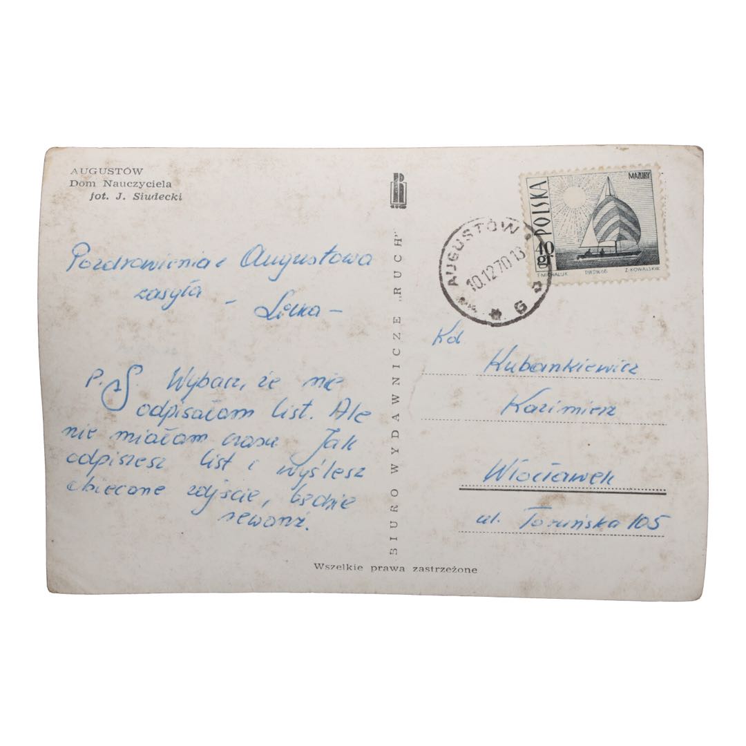 Autentyczny widok Domu Nauczycielskiego w Augustowie na pocztówce.