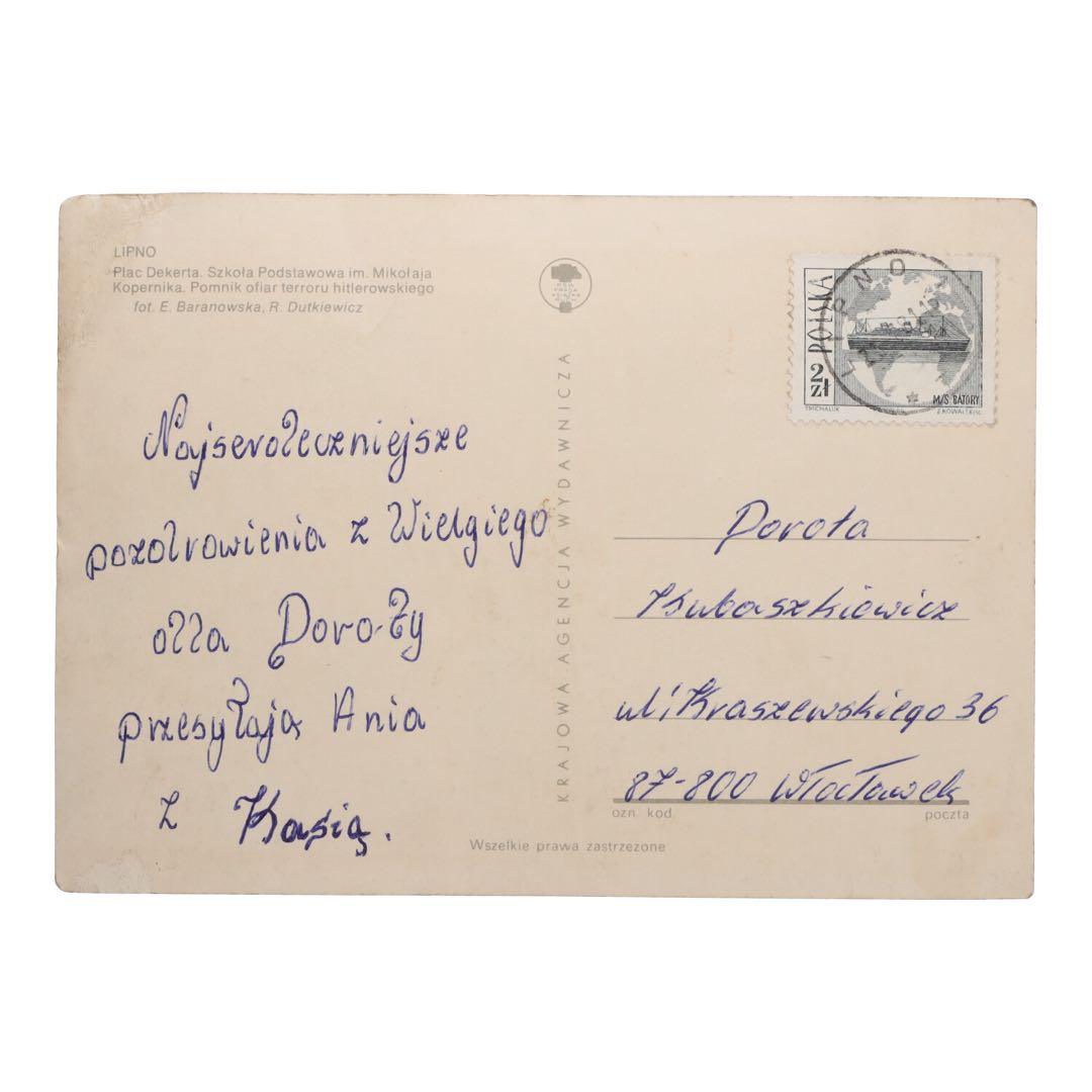 Prezentujemy wyjątkową pocztówkę przedstawiającą Plac Dekerta w Lipnie wraz z widokami na Szkołę Podstawową im. Mikołaja Kopernika oraz Pomnik Ofiar Terroru Hitlerowskiego. Ta wyjątkowa pocztówka o wymiarach 10,5 x 15 cm to nie tylko świadectwo historii, ale również wyjątkowy element dekoracyjny, który wprowadzi ducha przeszłości do Twojego wnętrza.