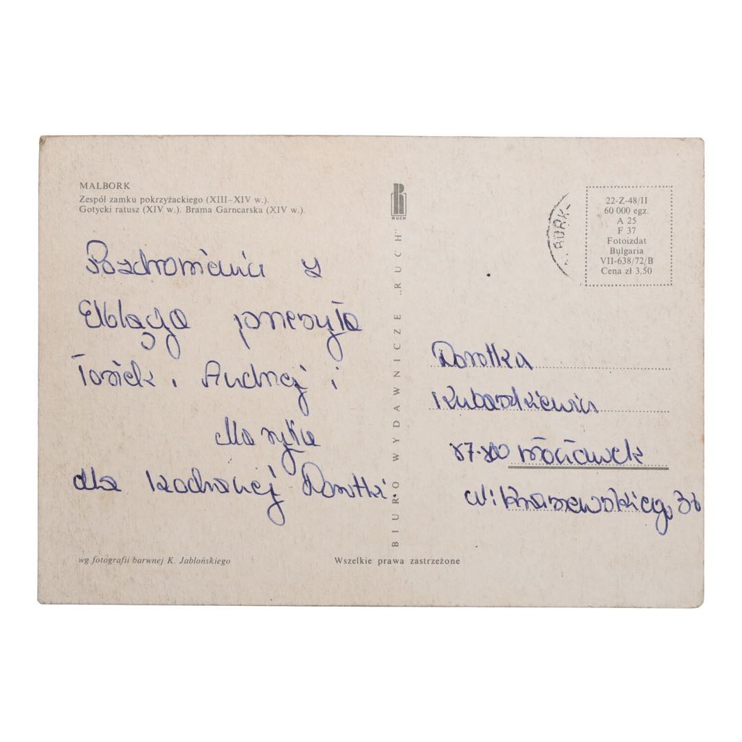 Wartość historyczna: pocztówka pochodzi z okresu PRL, co dodaje jej charakteru i autentyczności. Zamek Krzyżacki w Malborku, jako jeden z największych zachowanych gotyckich kompleksów zamkowych na świecie, oraz otaczające go zabytki zostały uwiecznione na tej kartce z niezwykłą dbałością o szczegóły.