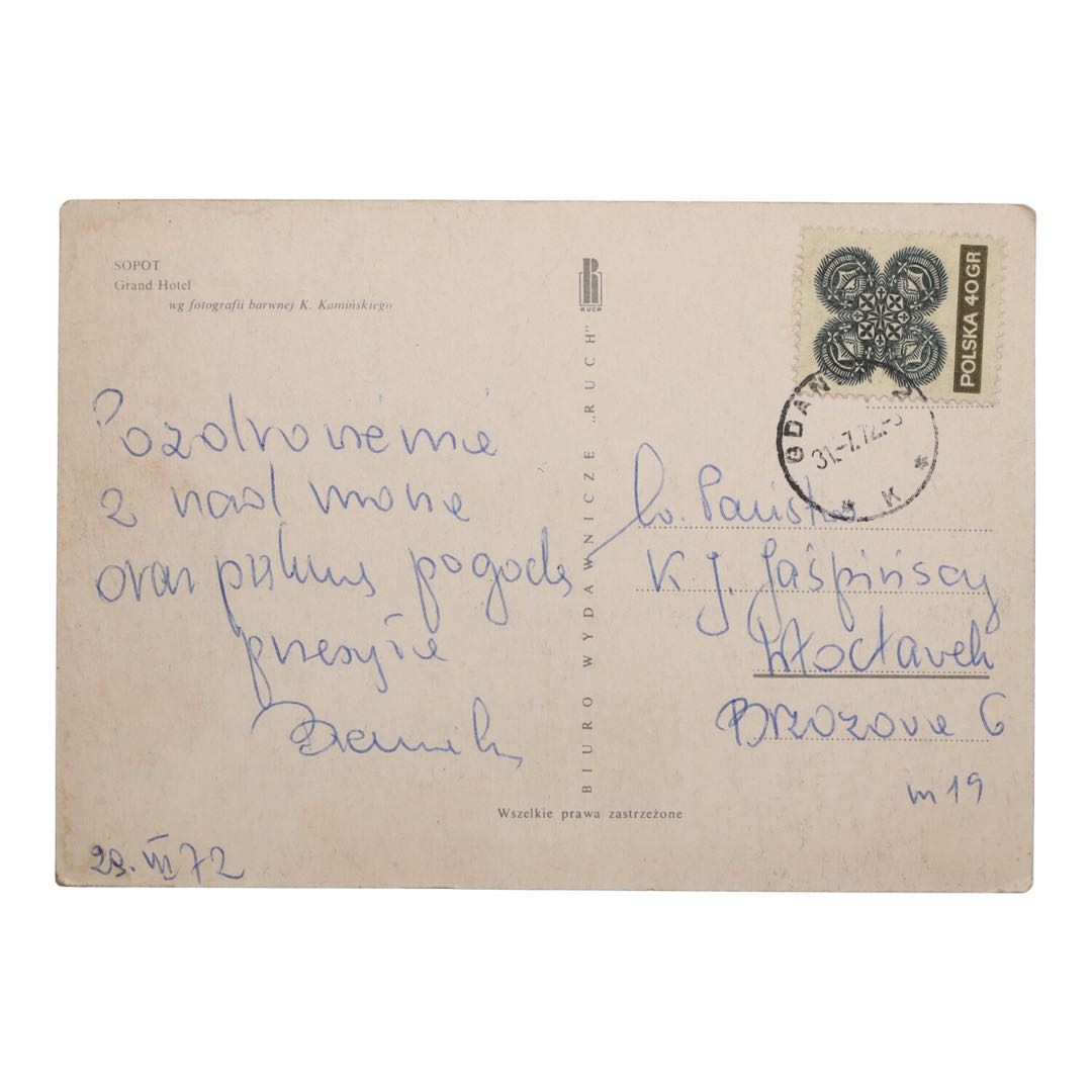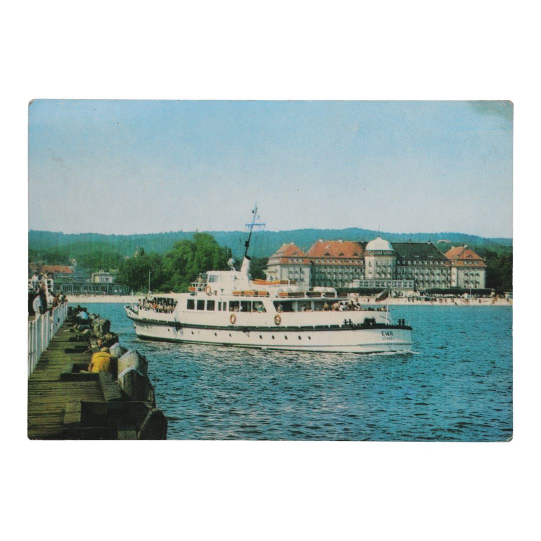 Przedstawiamy rzadką i uroczą pocztówkę, przedstawiającą prestiżowy Grand Hotel w Sopocie. Ta wyjątkowa karta o wymiarach 10,5 x 15 cm jest nie tylko zachwycającym oknem w przeszłość, ale także kawałkiem historii znakomitego nadmorskiego kurortu.