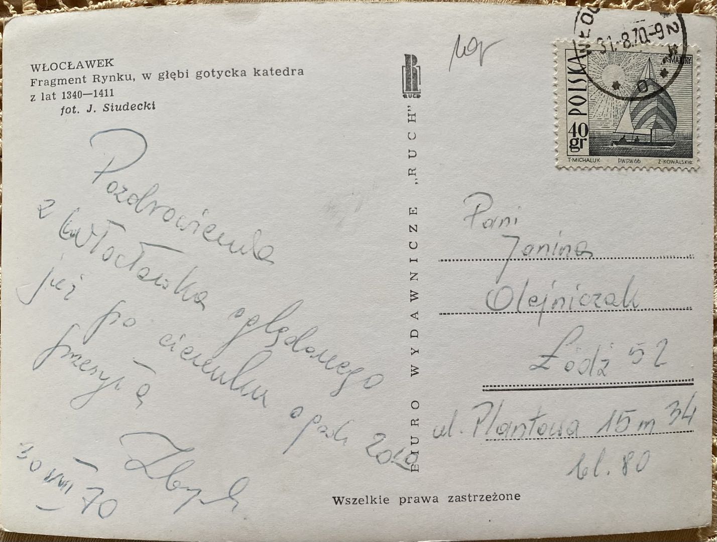 Poczuj klimat lat PRL-u dzięki tej wyjątkowej pocztówce, przedstawiającej urokliwy fragment włocławskiego rynku. Z głębi wznosi się gotycka katedra, świadek wieków i strażnik historii tego malowniczego miasta.