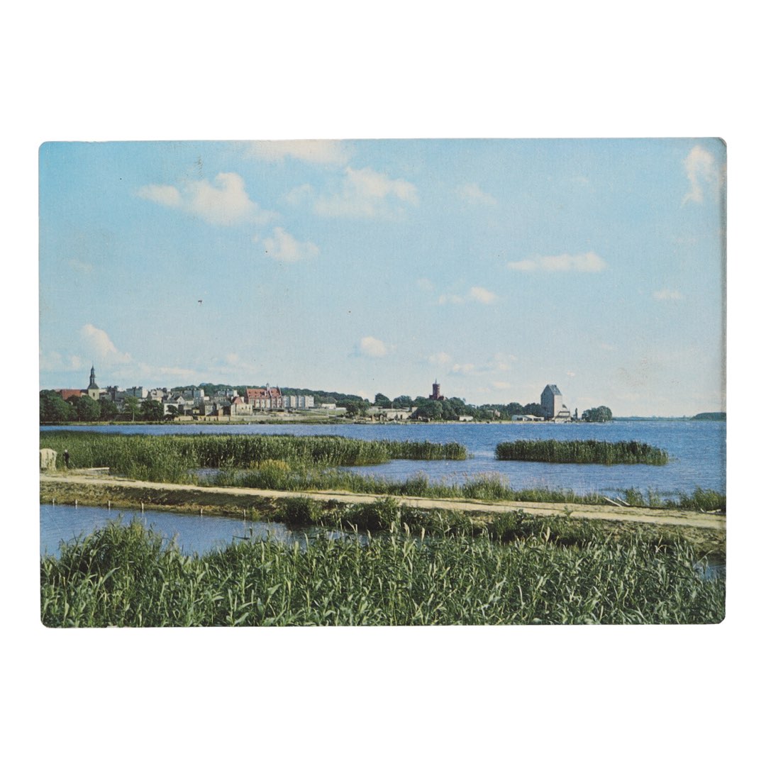 Malownicza panorama: Widok miasta nad Zalewem Kamieńskim na pocztówce przeniesie Cię wprost do minionych czasów i zachwyci pięknem tego miejsca.