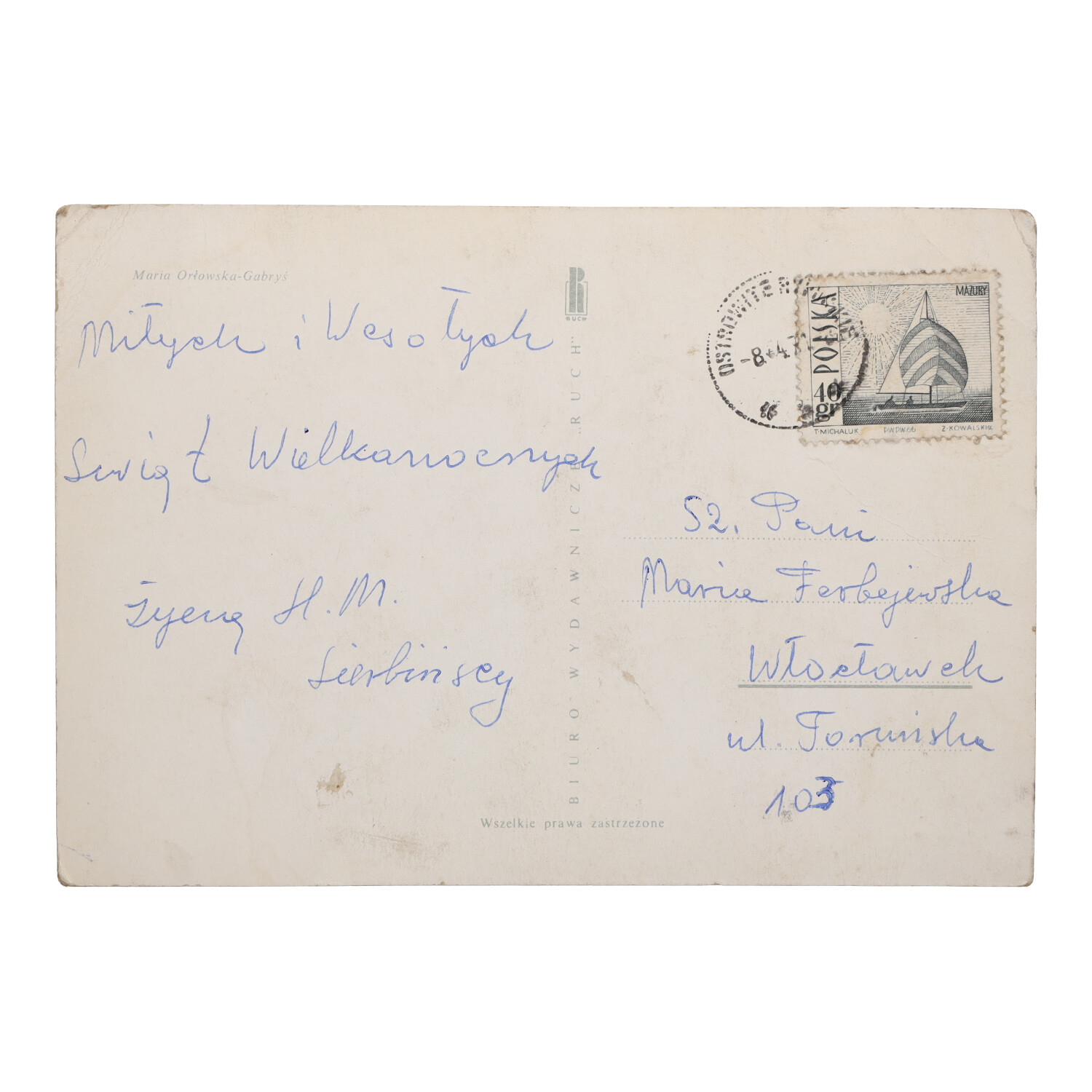 Unikatowa pocztówka świąteczna z okresu PRL - dzieło Marii Orłowskiej-Gawryś