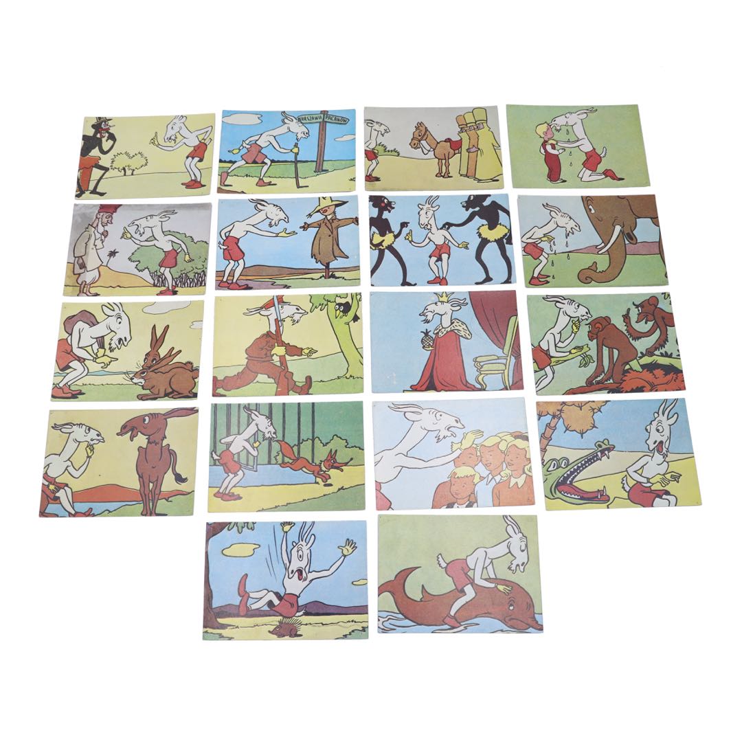 Cechy: Zestaw 18 autentycznych pocztówek z serii "Przygody Koziołka Matołka".