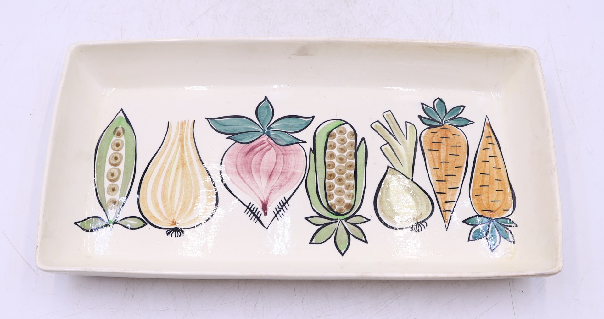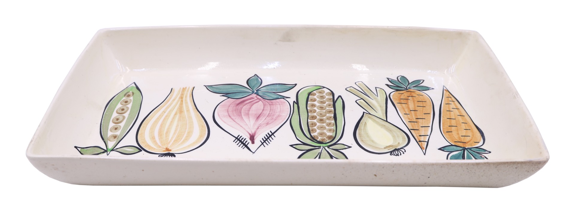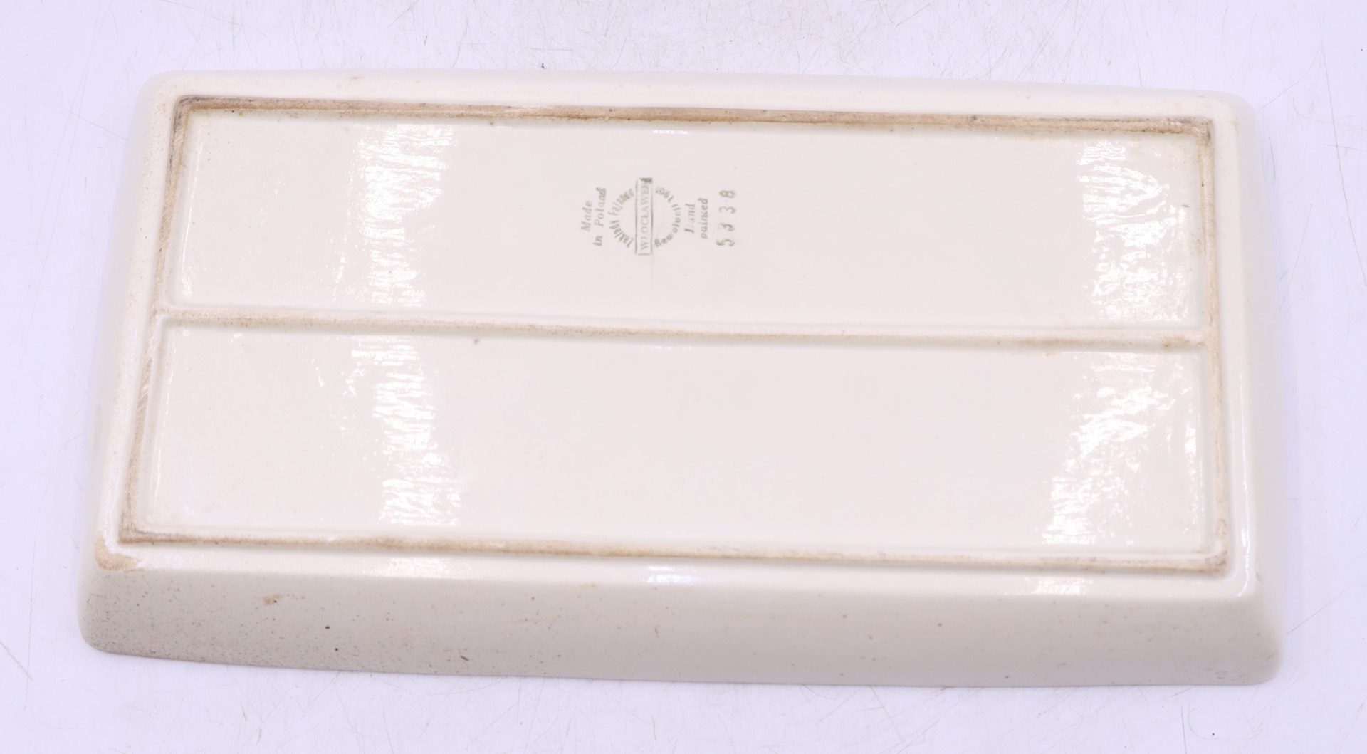 Wymiary tego wyjątkowego dzieła sztuki to 5 cm wysokości, 37,5 cm długości i 19,5 cm szerokości. Proporcje te gwarantują zarówno doskonały wygląd na stole, jak i wygodne użytkowanie. Choć na powierzchni półmiska widoczne są subtelne ślady użytkowania, dodają mu one charakteru i opowiadają historię minionych lat.