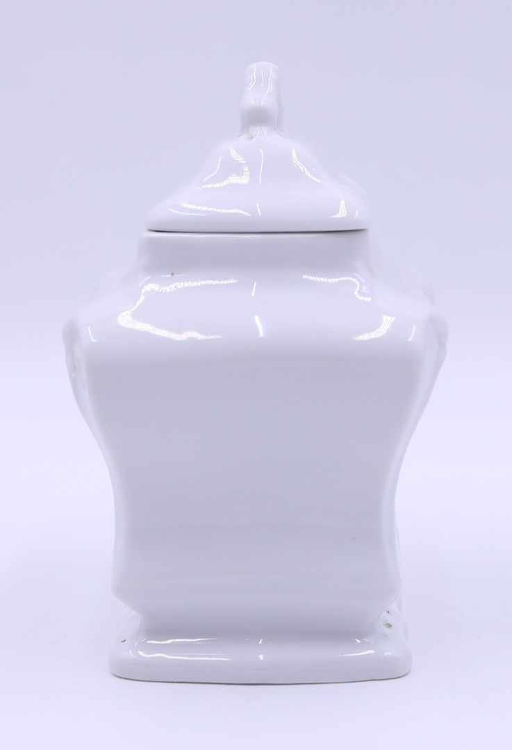 Porcelanowa puszka pochodząca z Włocławka i datowana na lata osiemdziesiąte XX wieku. Ta niezwykła puszka, będąca prawdziwym dziełem ceramicznego rzemiosła, zachwyca nie tylko estetyką, ale i wartością historyczną. Jest to egzemplarz niesygnowany, co czyni go jeszcze bardziej unikatowym i poszukiwanym przez kolekcjonerów.