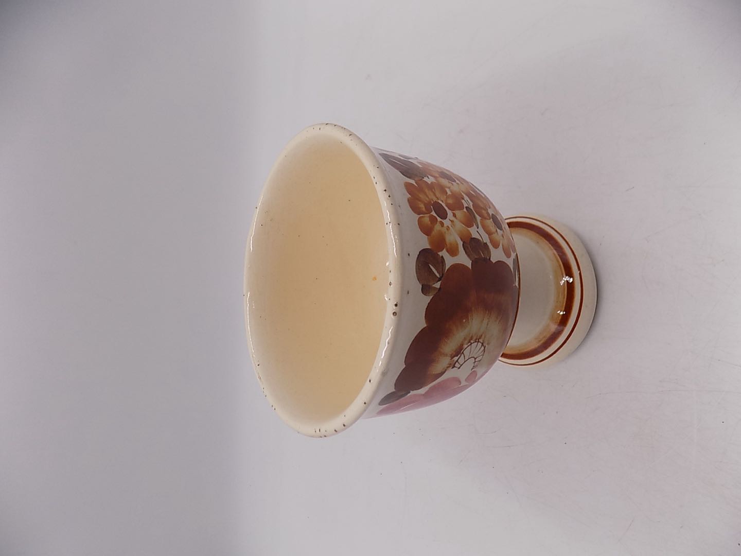 Fajansowy puchar z Włocławka z lat 70/80-tych. Sygnowany. Ręcznie malowany. Wymiary; wys.15 x 12,5 cm.
