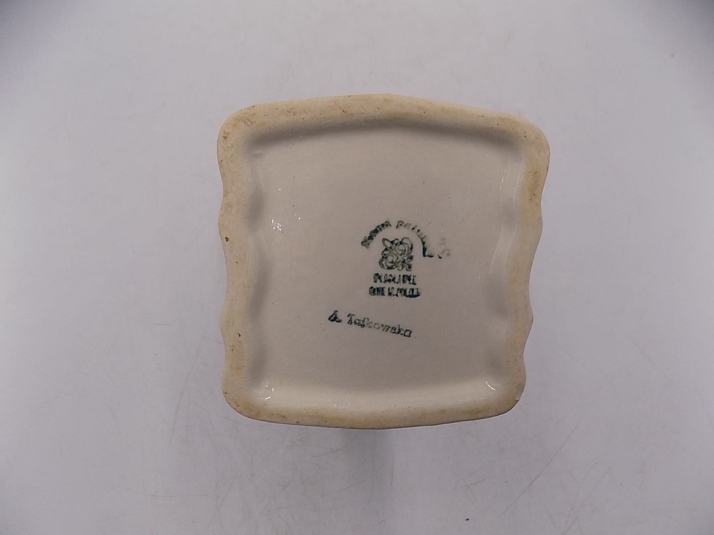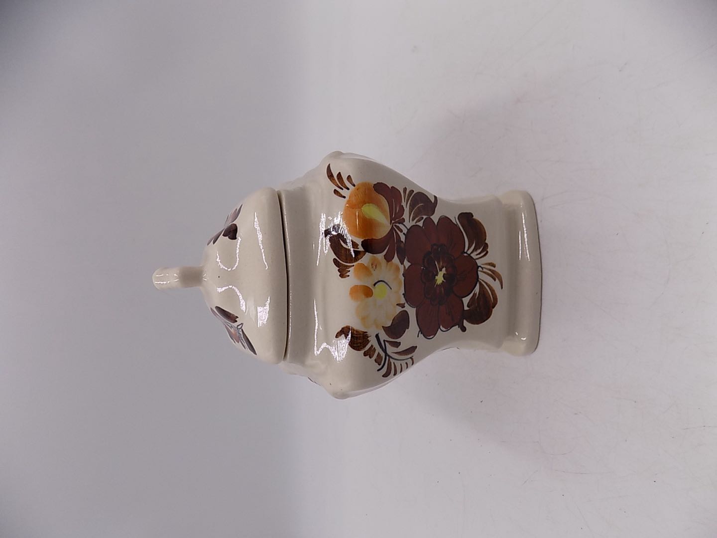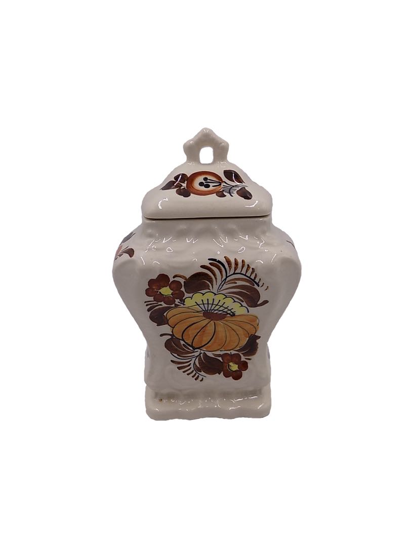 Fajansowa puszka z Włocławka z lat 70/80-tych. Sygnowana. Ręcznie malowana. Wymiary; wys.20 x 12 x 11.5 cm.