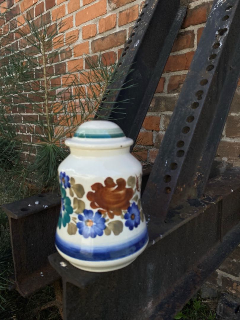 Fajansowa puszka z Włocławka z lat 80-tych. Sygnowana. Ręcznie malowana przez Lenartowicz. Wzór 1535/1. Wymiary; wys. 20 x 13,5 cm. Ślady użytkowania.