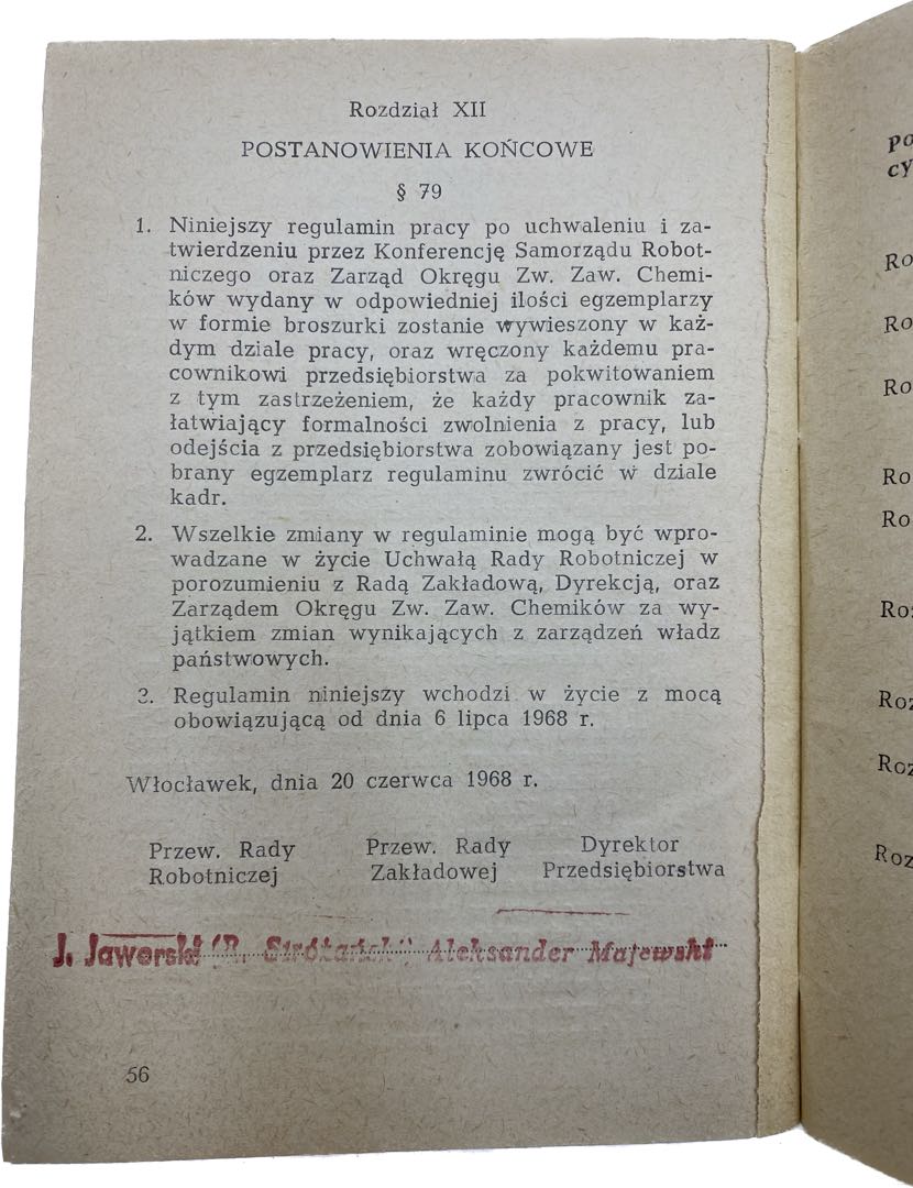 Regulamin pracy Włocławskich Zakładów Ceramiki Stołowej we Włocławku PRL - unikat, który zachwyci każdego miłośnika historii i retro.