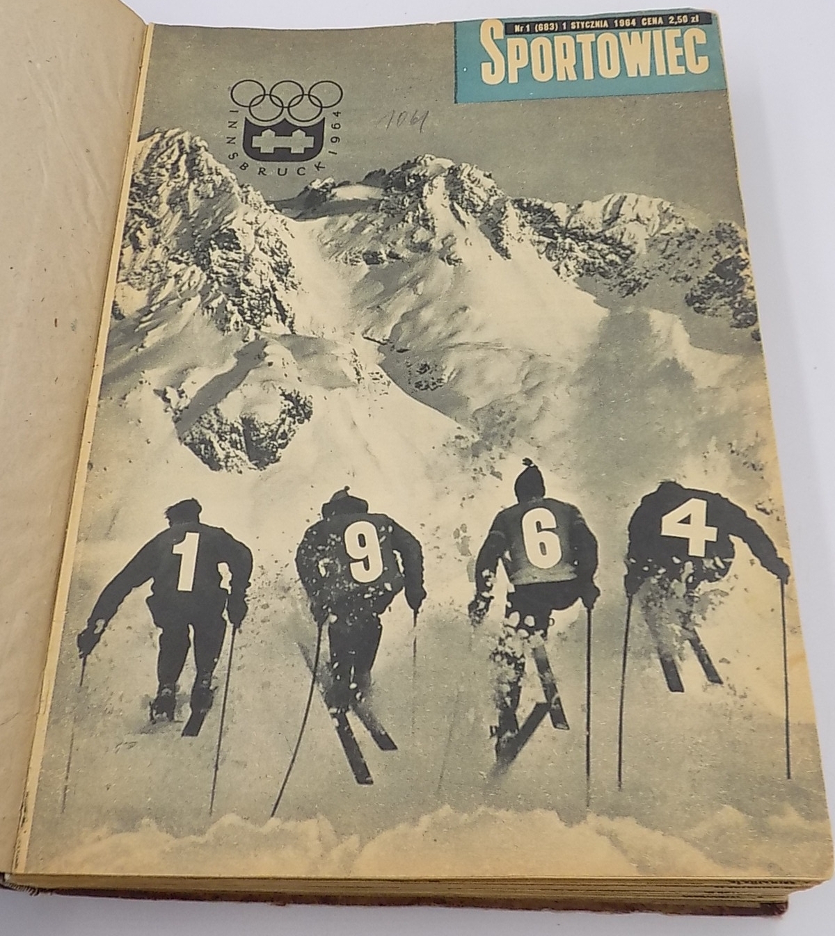 Kompletny rocznik "Sportowiec" z 1964 r. Oprawa sztywna uszkodzona.