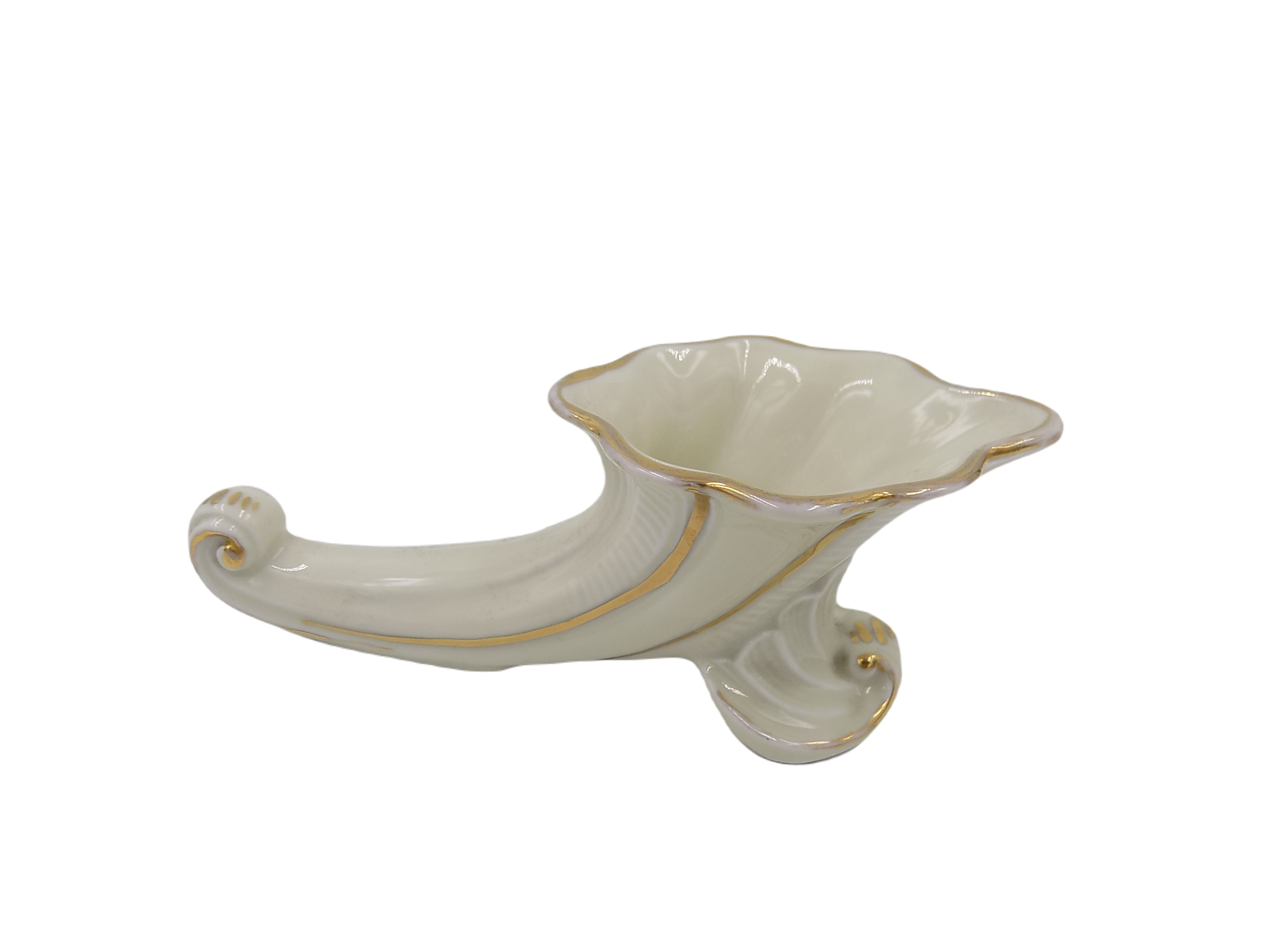 Róg obfitości z Fabryki Porcelany w Langewiesen. Sygnatura z lat 1950-72. Wymiary; wys.5 x 14 x 6 cm.