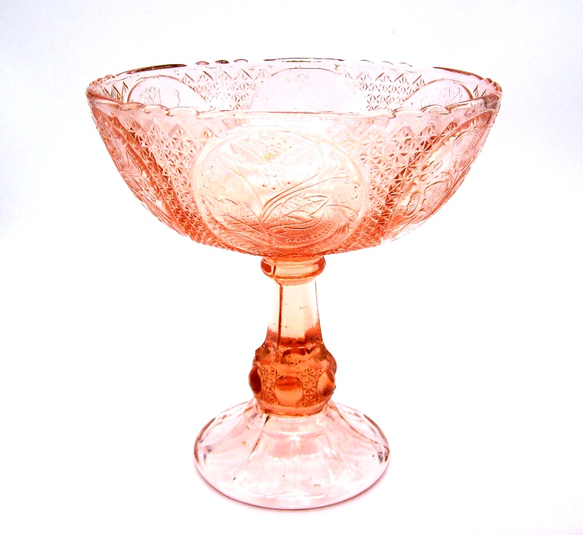 Szkło prasowane, tłoczona dekoracja. Szkło rozalinowe.