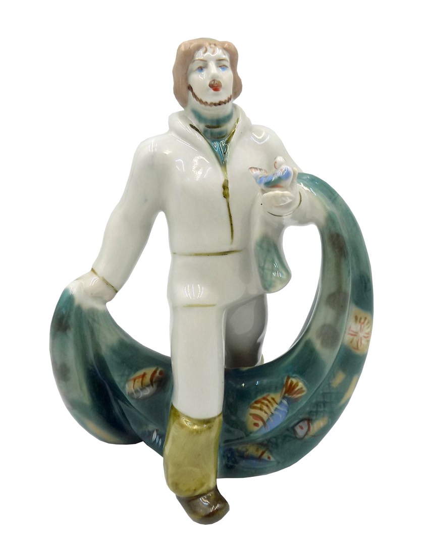 Porcelanowa figurka o nazwie "Rybak z siecią ryb" z renomowanej fabryki ceramiki ZHK Polonné z Ukrainy. Od 1973 roku firma ta zdobyła uznanie swoich klientów, tworząc unikalne i szlachetne dzieła ceramiczne, które zachwycają estetyką i szczegółowym wykonaniem. Ta figurka jest prawdziwym klejnotem wśród ich kolekcji.