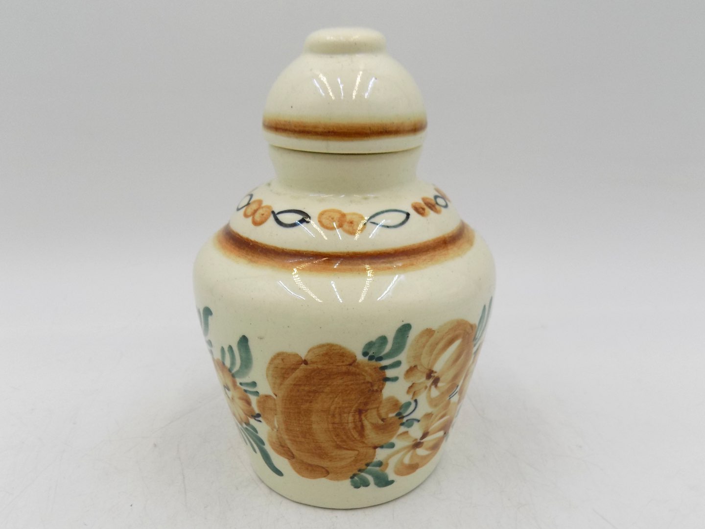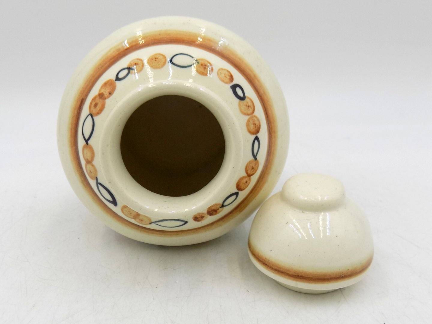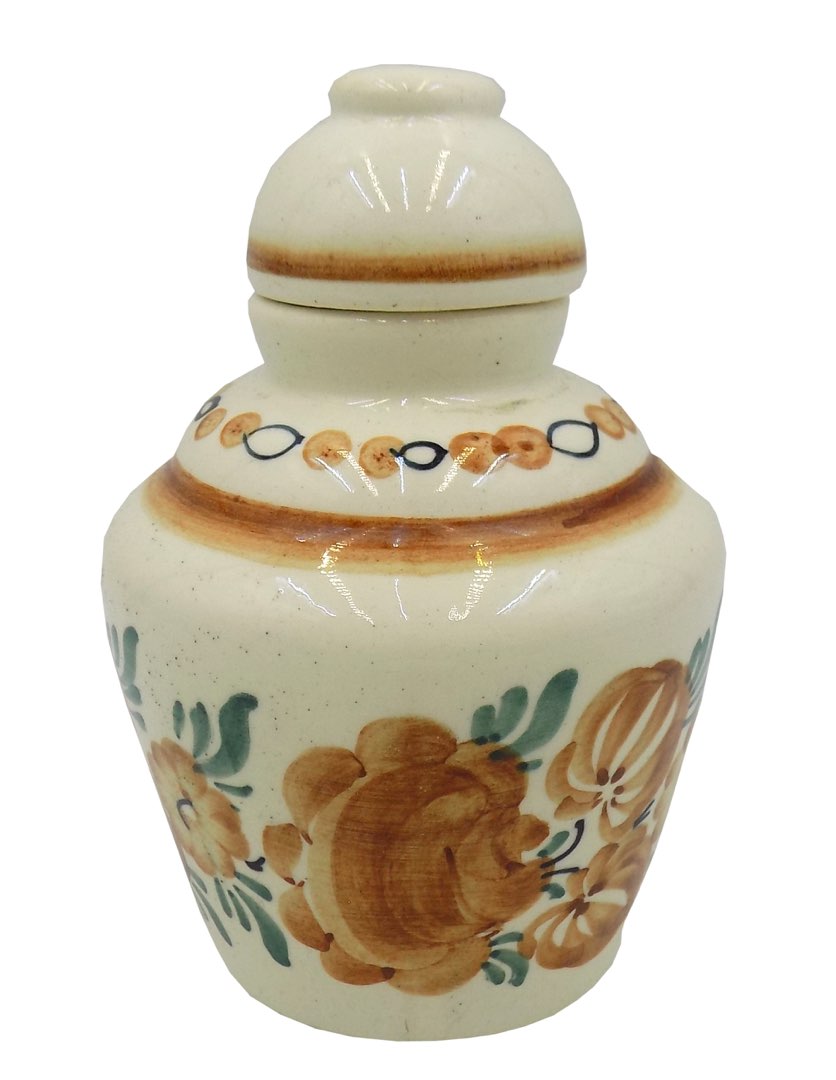 Oferujemy Państwu niepowtarzalną okazję stania się szczęśliwym posiadaczem rzadkiej puszki Fajans Włocławek z lat 80-tych XX wieku. Ta wyjątkowa puszka, sygnowana i ręcznie malowana, to prawdziwe piękno sztuki, które z pewnością wzbogaci każde wnętrze i stanie się niezwykłym prezentem dla każdego miłośnika oryginalnych przedmiotów.
