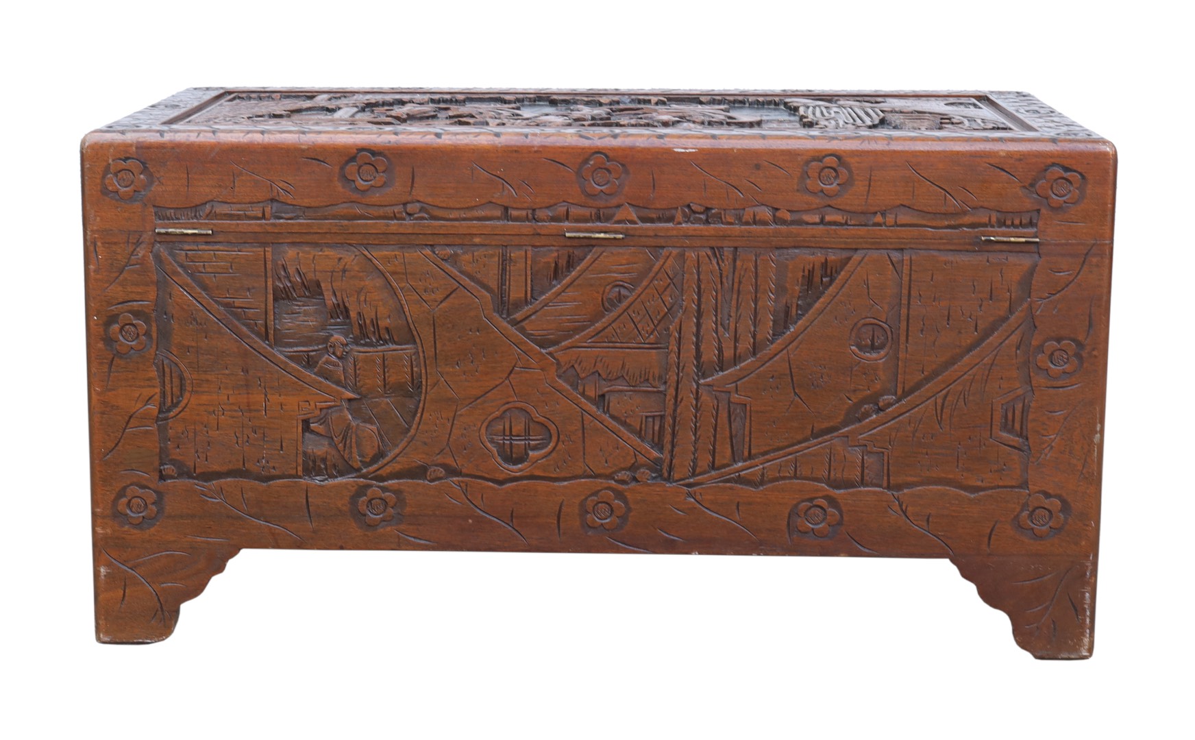 Unikalna Rzeźbiona Skrzynia z Połowy XX Wieku - Elegancja i Historia W Twoim Domu