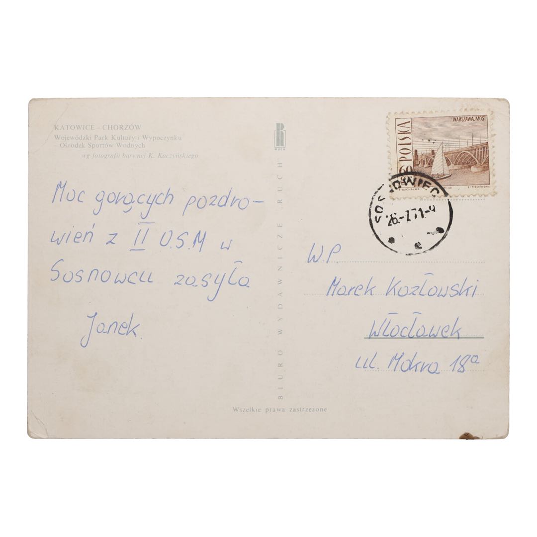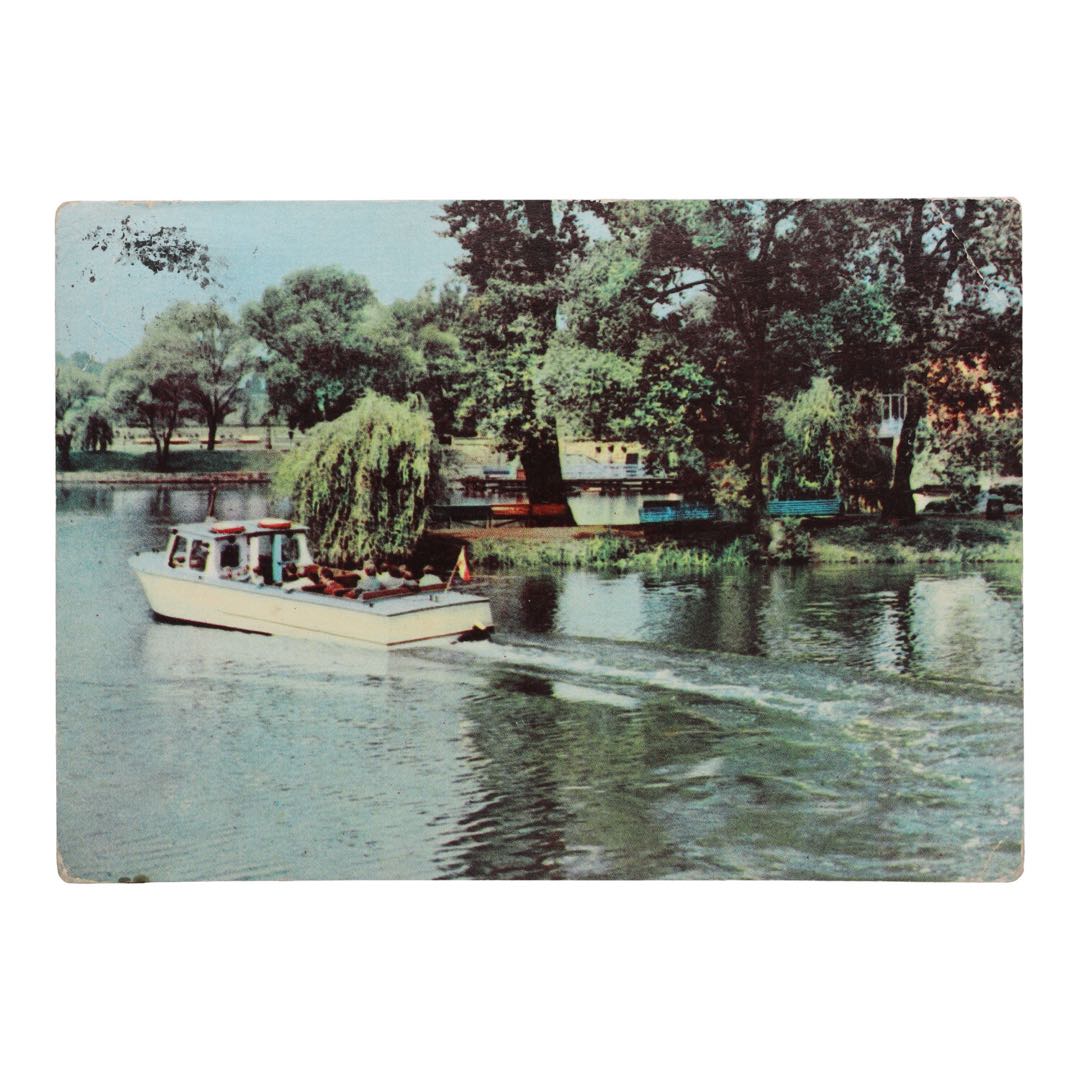 Cofnij się w czasie dzięki tej wyjątkowej pocztówce, która z nostalgiczną precyzją oddaje ducha epoki komunizmu. Przedstawia nie tylko znaczący krajobraz miejski, ale także centrum sportów wodnych, będące świadectwem życia społecznego i kulturalnego tamtych czasów.