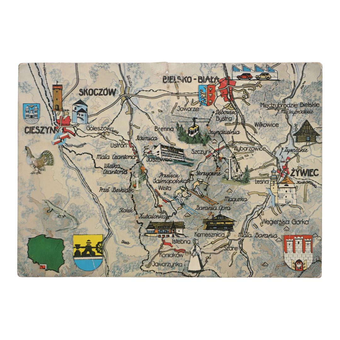 Czy ta pocztówka przedstawiająca mapę Beskidu Śląskiego jest oryginalną publikacją z okresu PRL?