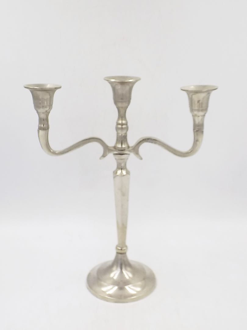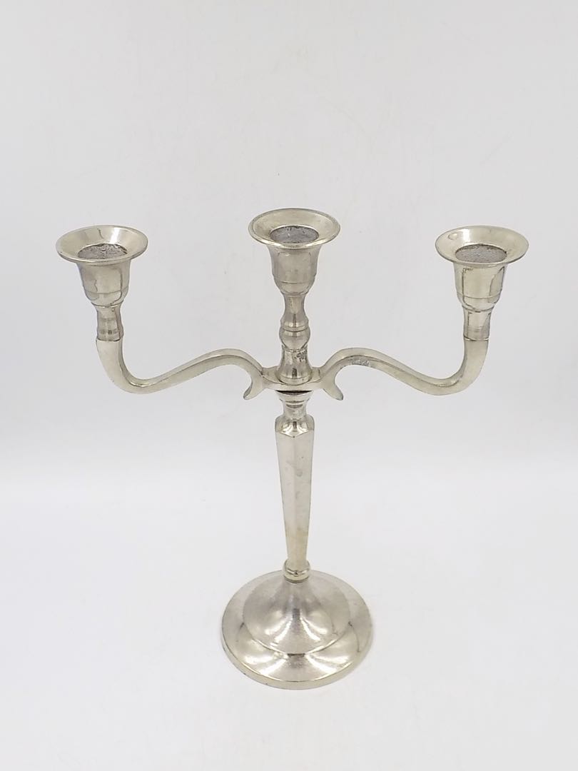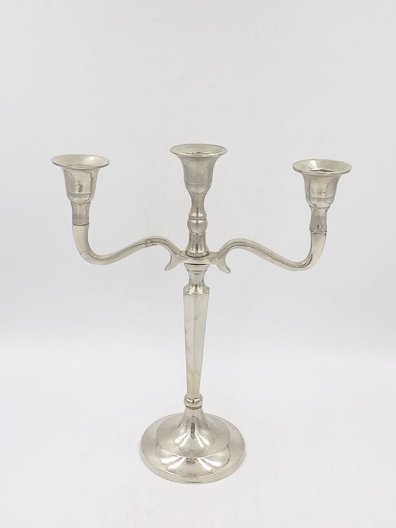 Niklowany świecznik z poł.XX w. Wymiary; wys.25,5 x 22 x 9,5 cm