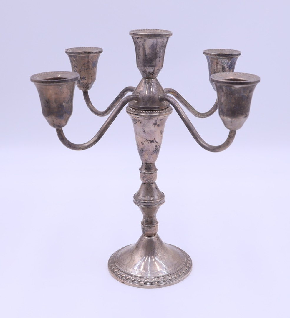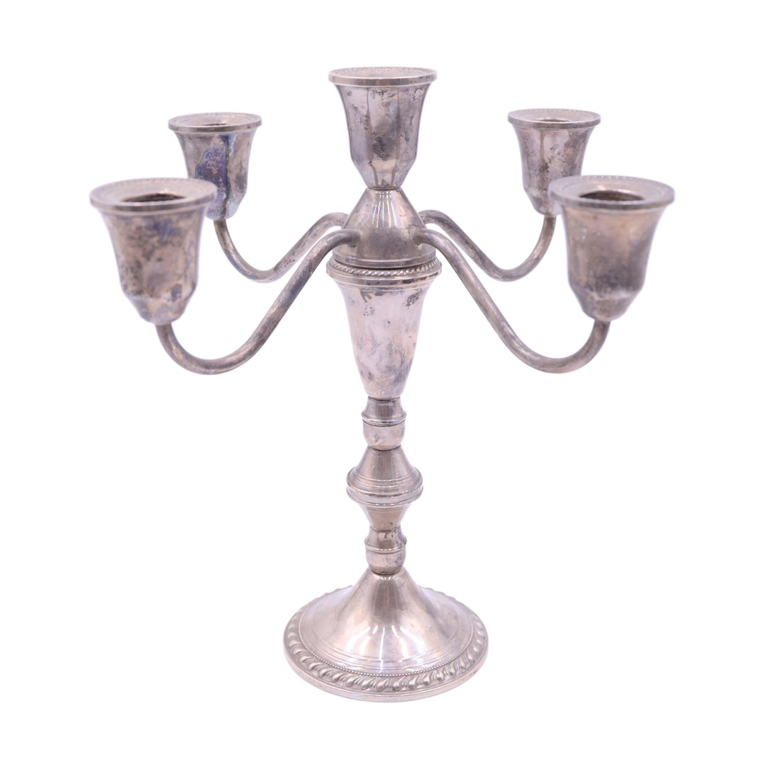 Srebrny świecznik Duchin Creation, pochodzący z Anglii i datowany na prawdopodobnie drugą połowę XX wieku. Ten misternie wykonany świecznik jest prawdziwym klejnotem dla miłośników wyrafinowanego piękna i wyszukanego stylu.
