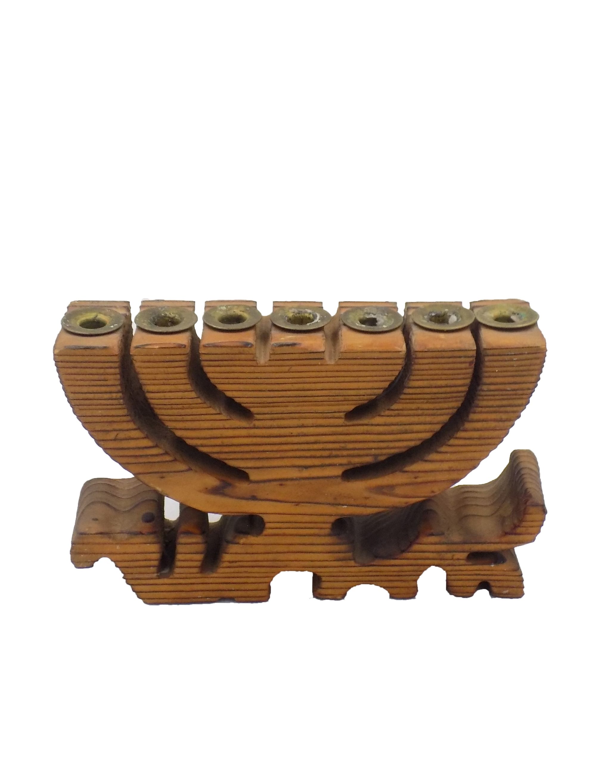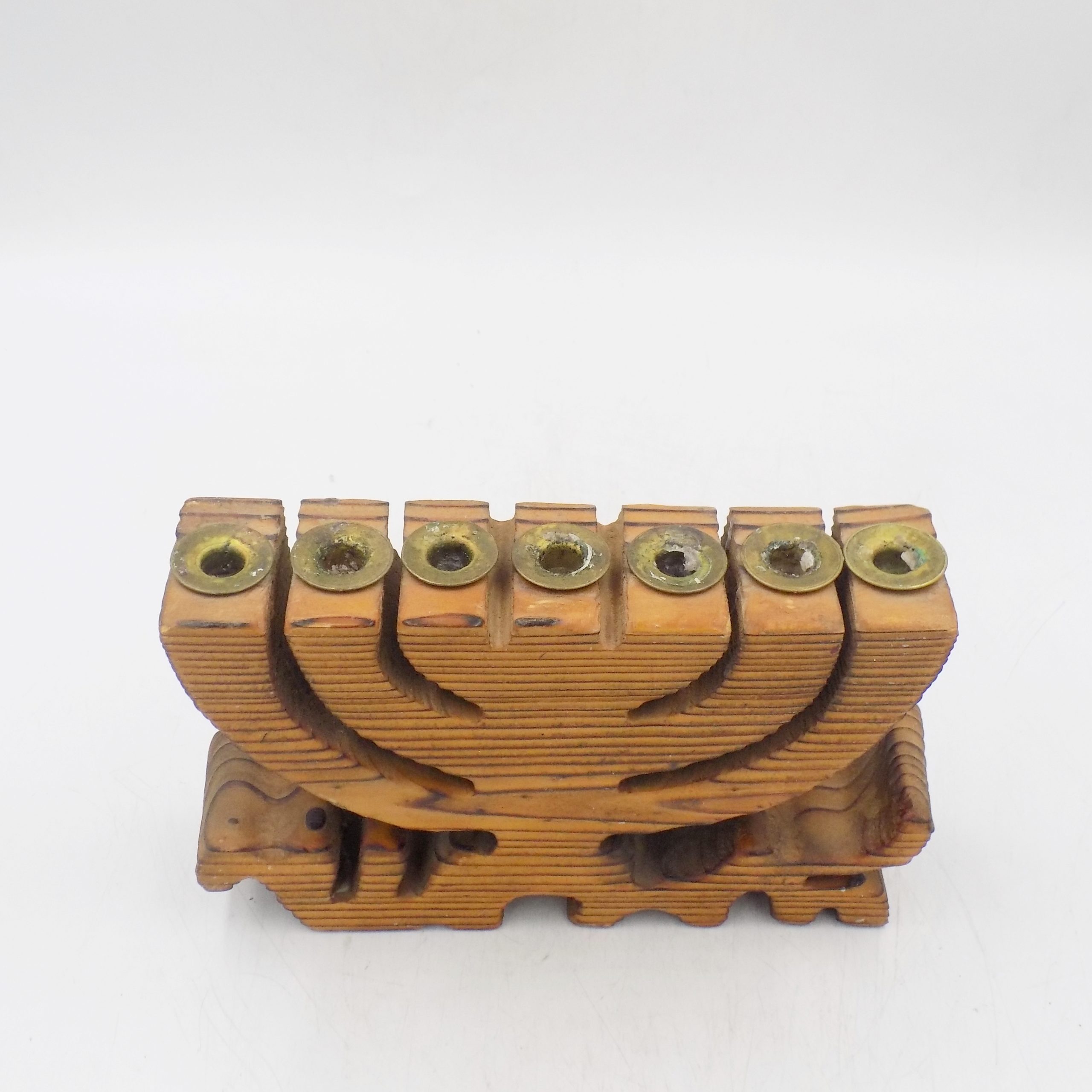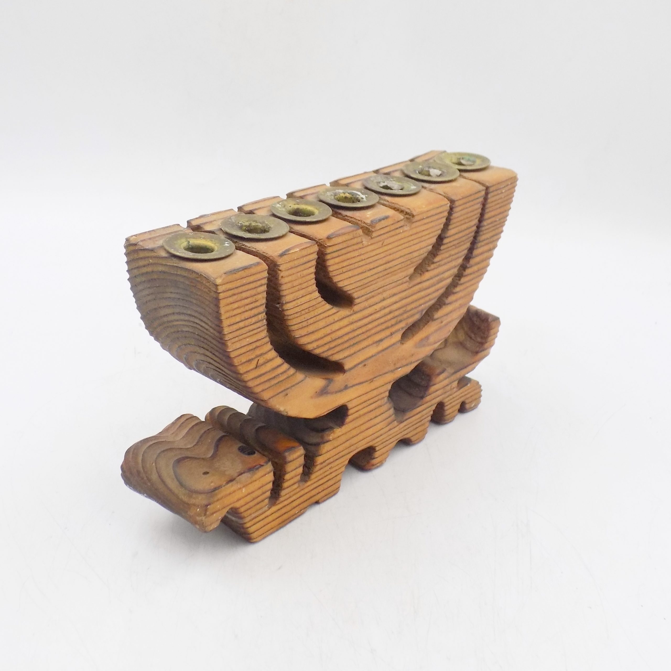 Świecznik żydowski z drewna z czasów PRL. Wymiary; wys.12 x 4,5 x 19,5 cm.