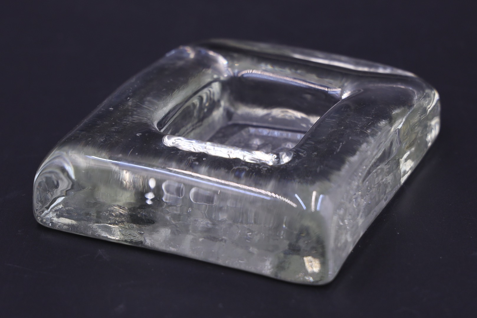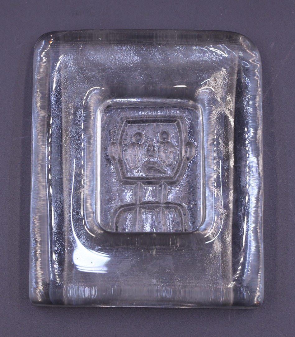 Szklana rzeźba Modernista VTG Erik Höglund Boda Art kwadratowa popielniczka ROBOT