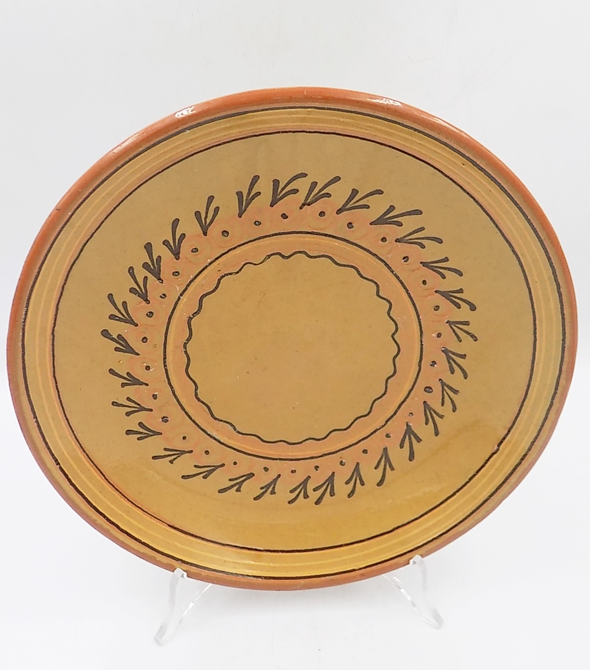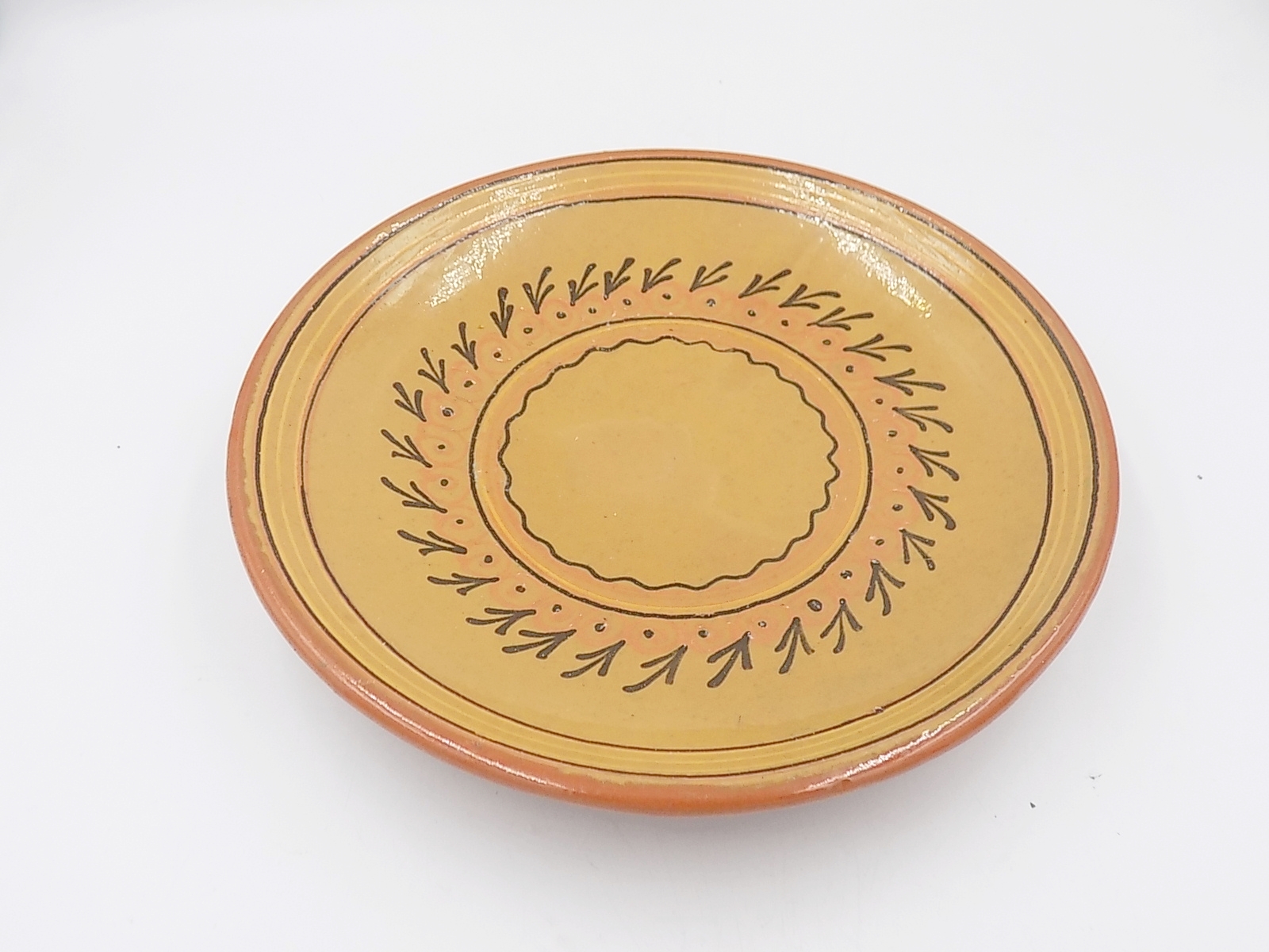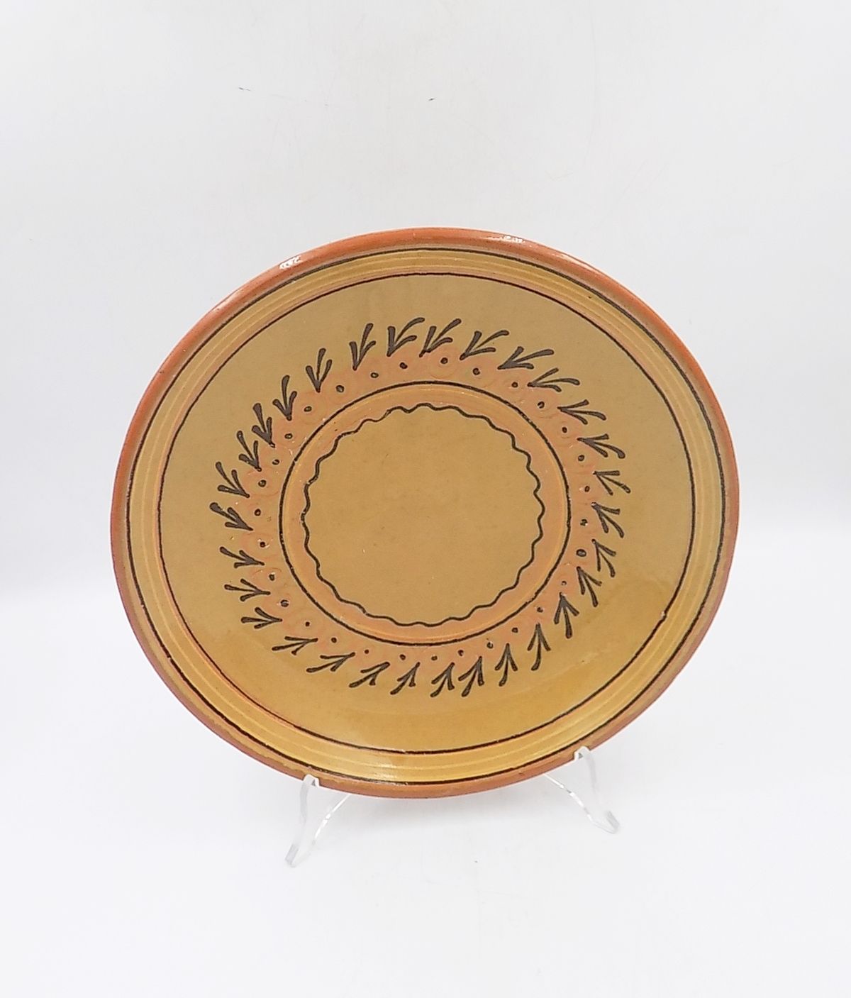 Talerz dekoracyjny z czerwonej glinki z Łysej Góry. Oryginalna etykieta. Wymiary; 25,5 cm.