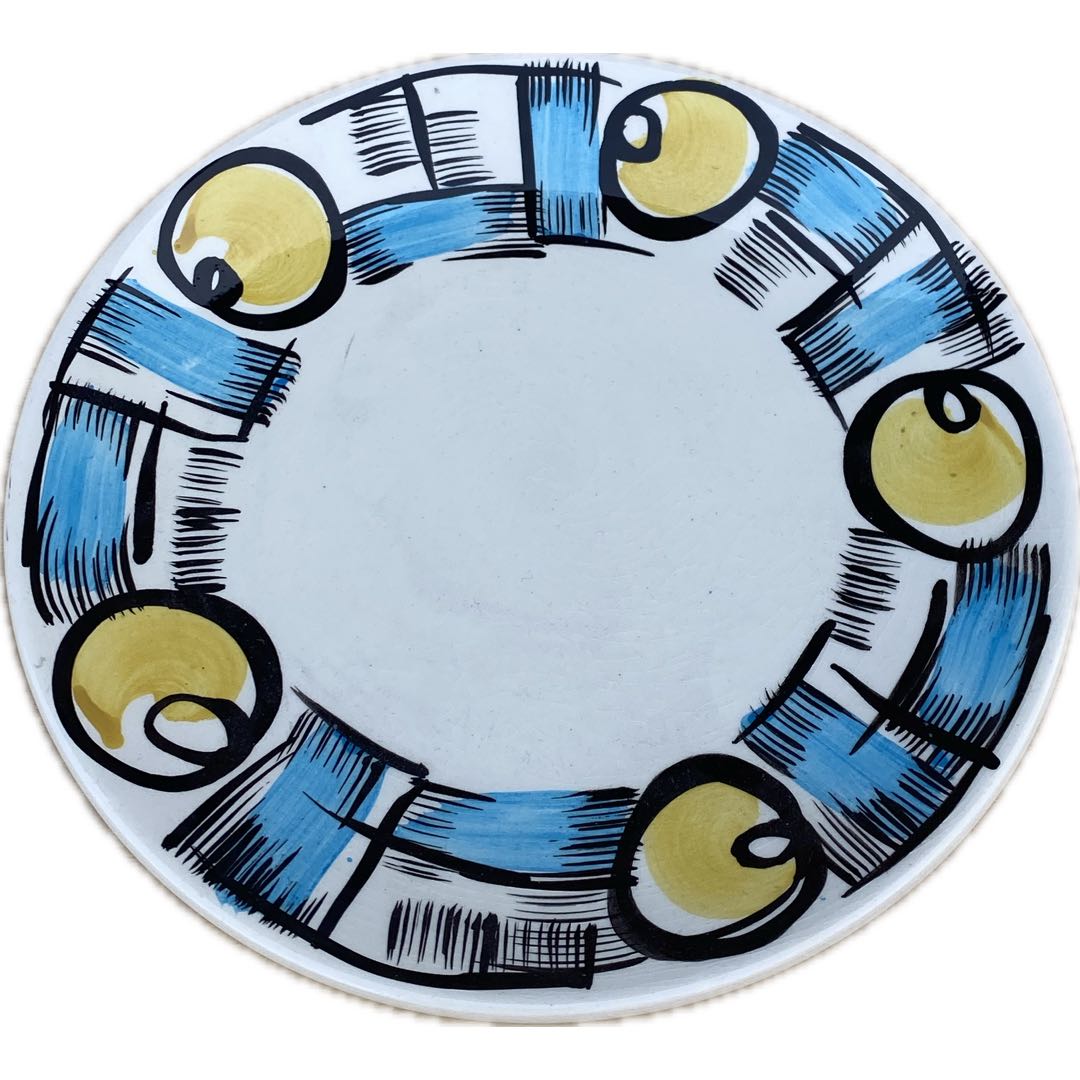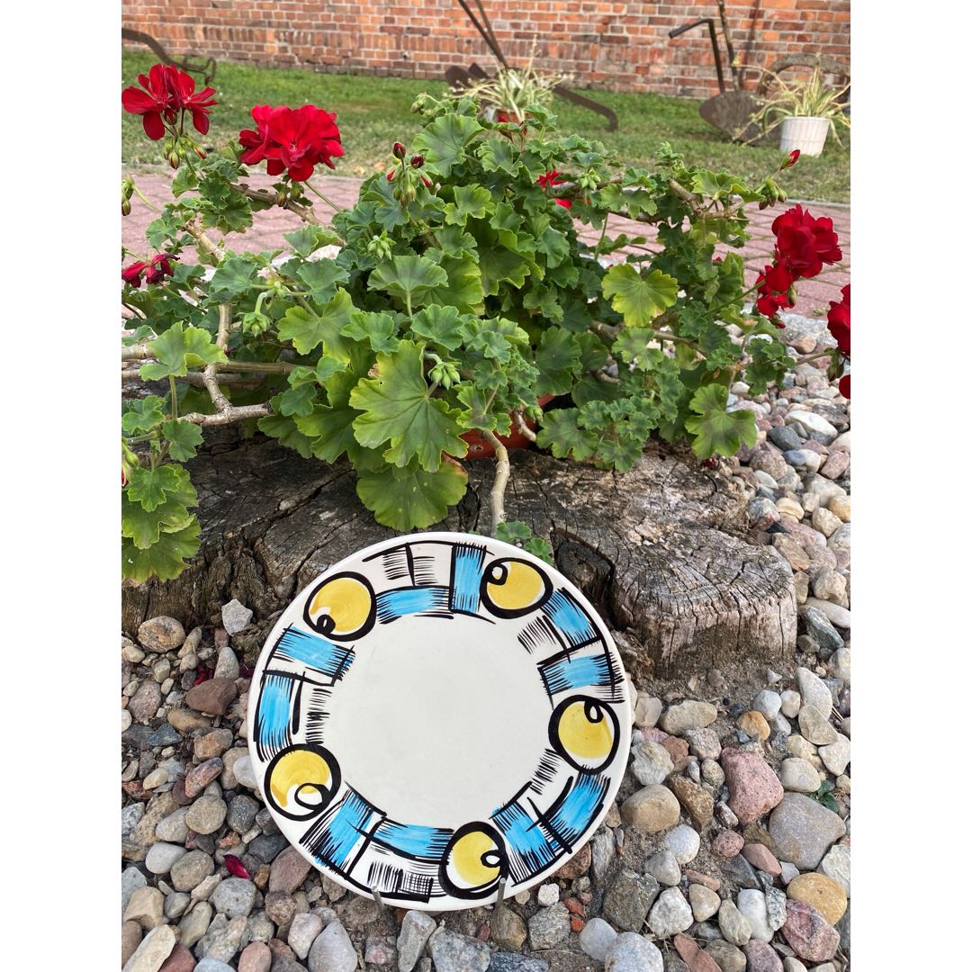 Fajansowy talerzyk deserowy z Koła z lat 70-tych. Sygnowany. Ręcznie malowany. Wymiary; 19 cm.