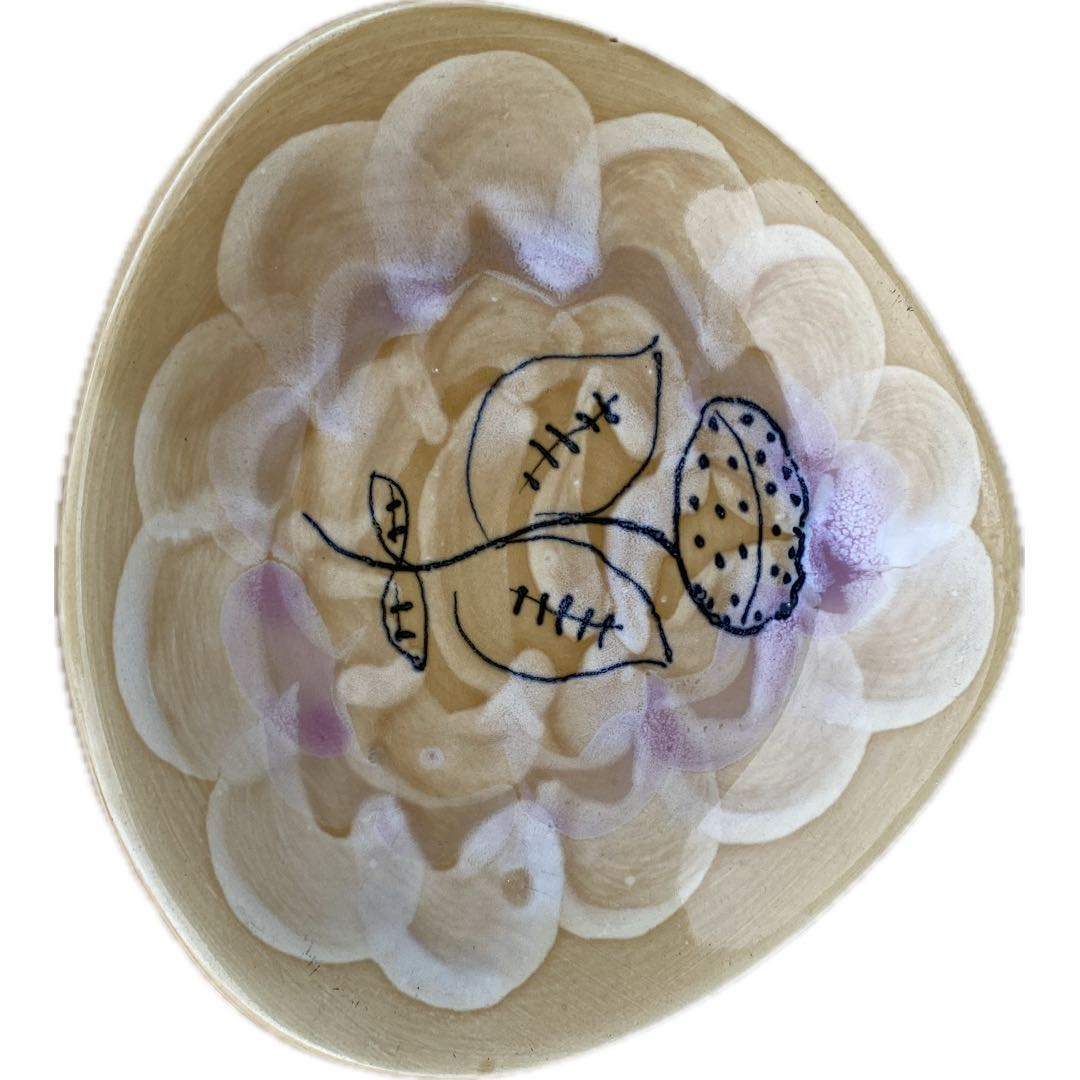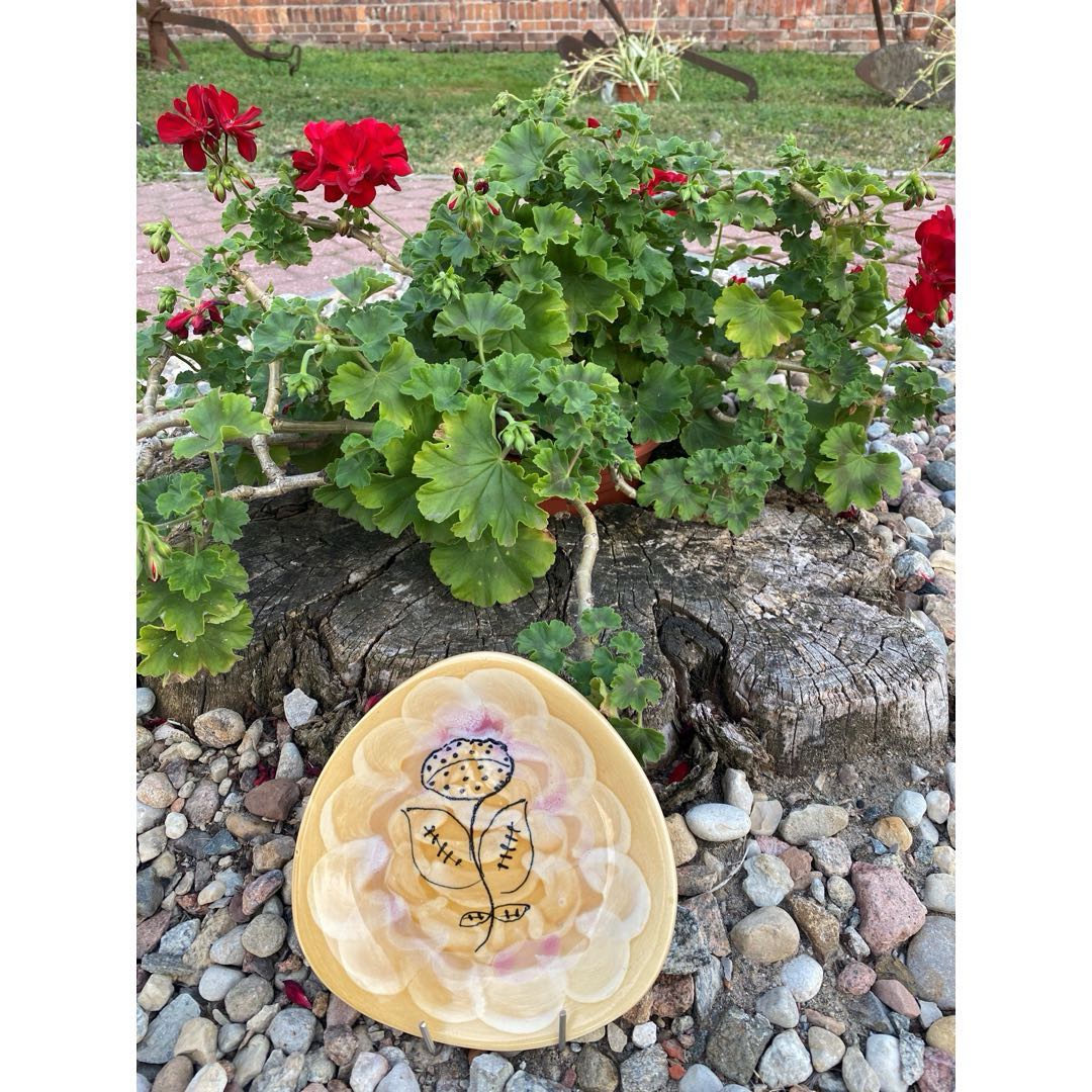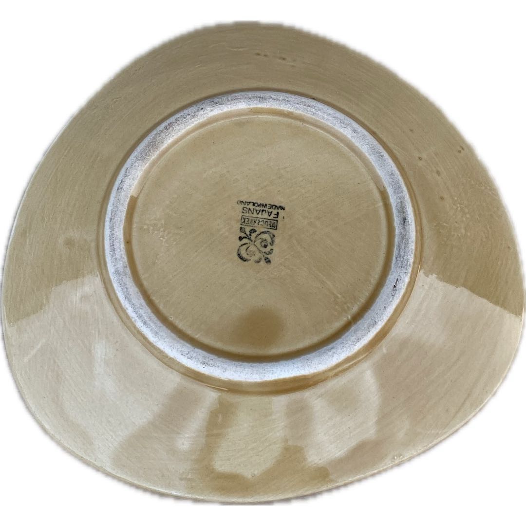 Fajansowy talerzyk deserowy z Włocławka z lat 60-tych. Sygnowany. Ręcznie malowany. Wzór 185 zatwierdzony w 1957 roku. Projekt Elżbieta Piwek-Białoborska. Wymiary; 17,5 cm.