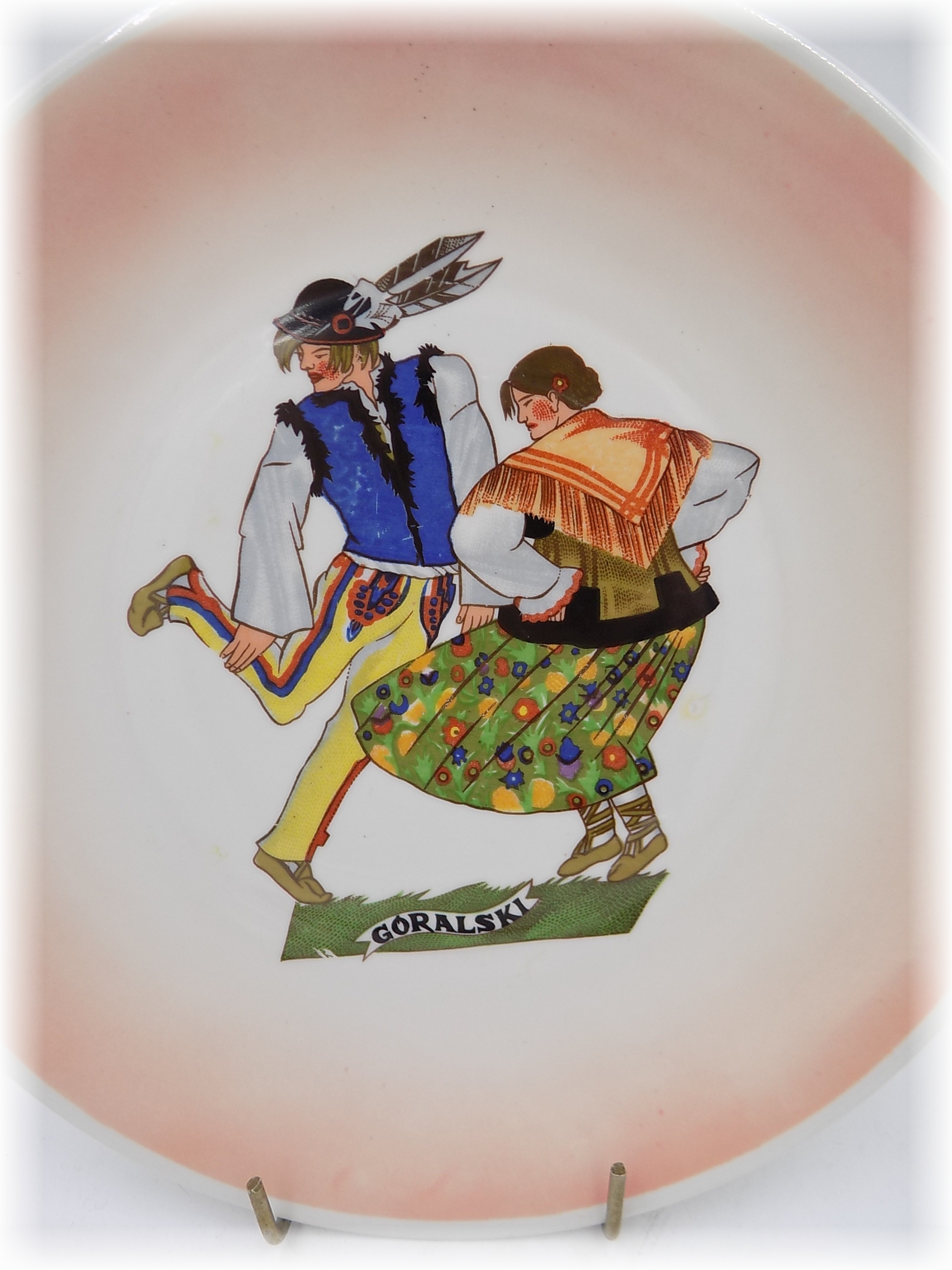 Talerz kolekcjonerski GÓRALSKI z serii "Tańce Polskie" z Zakładów Porcelany Stołowej Wałbrzych w Stary Zdroju. Sygnatura stosowana od 1952 r. Wymiary; 24,5 cm