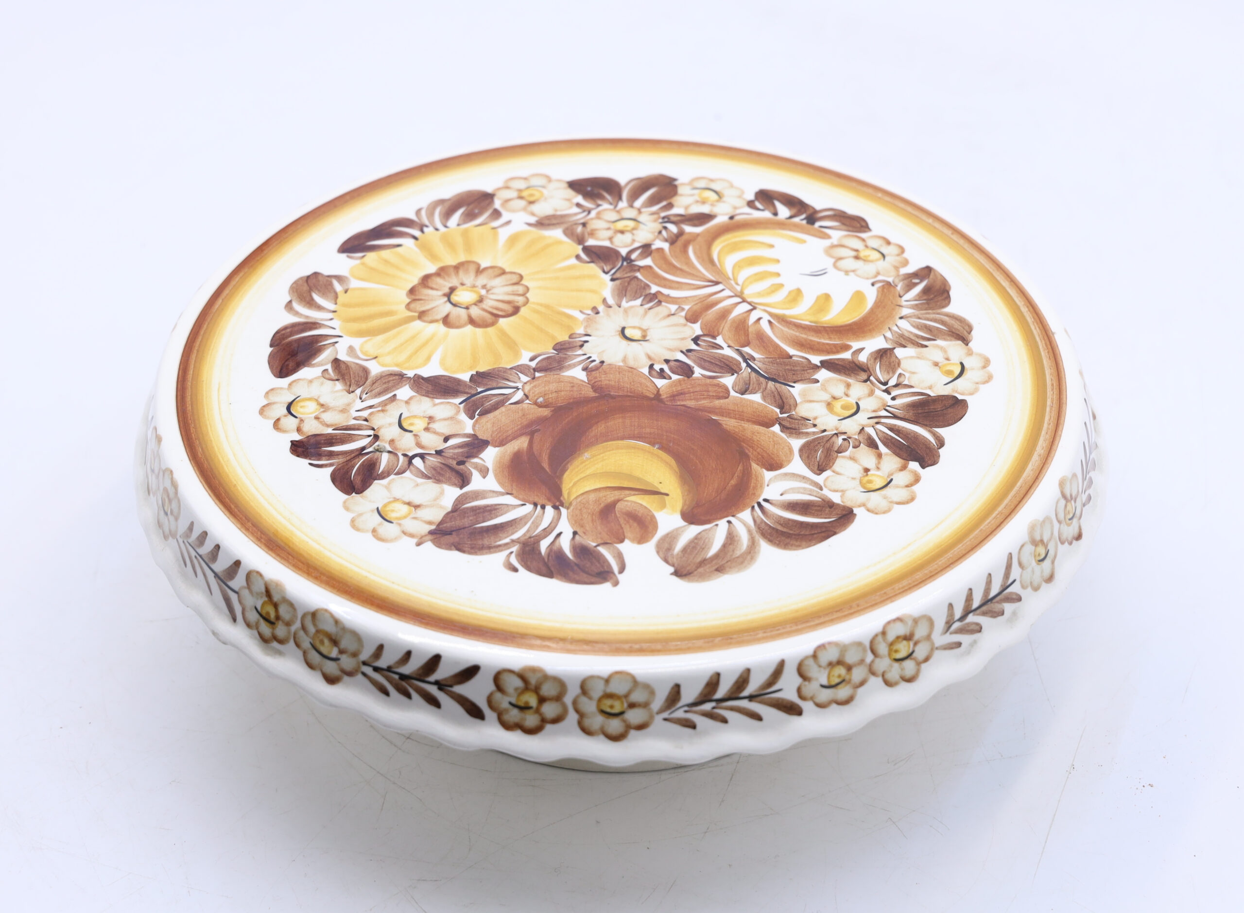 Fajansowa tortownica z Koła z lat 70/80-tych. Sygnowana. Ręcznie malowana.
