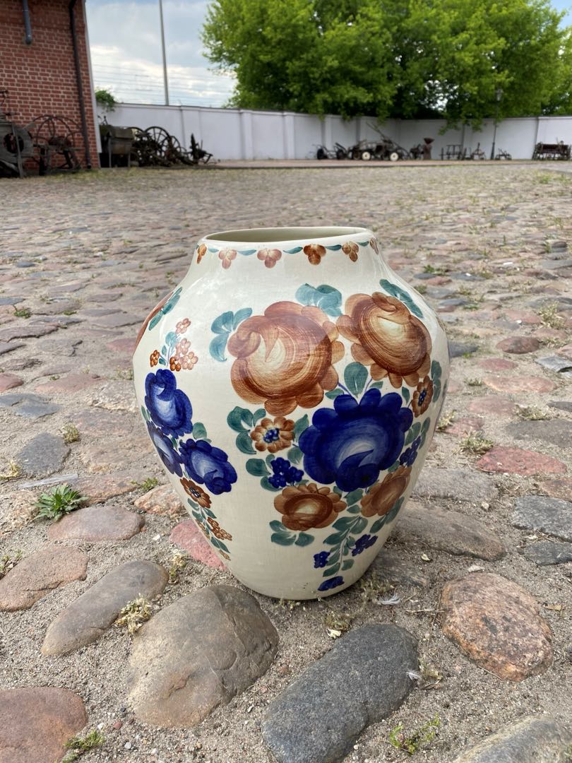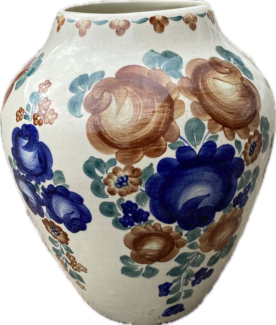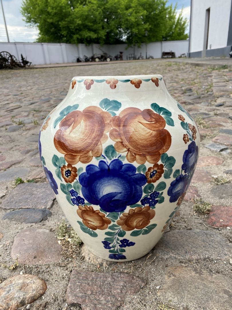 Fajansowy wazon z Włocławka z lat 60/70-tych. Sygnowany. Ręcznie malowany. Wymiary; wys. 39 cm