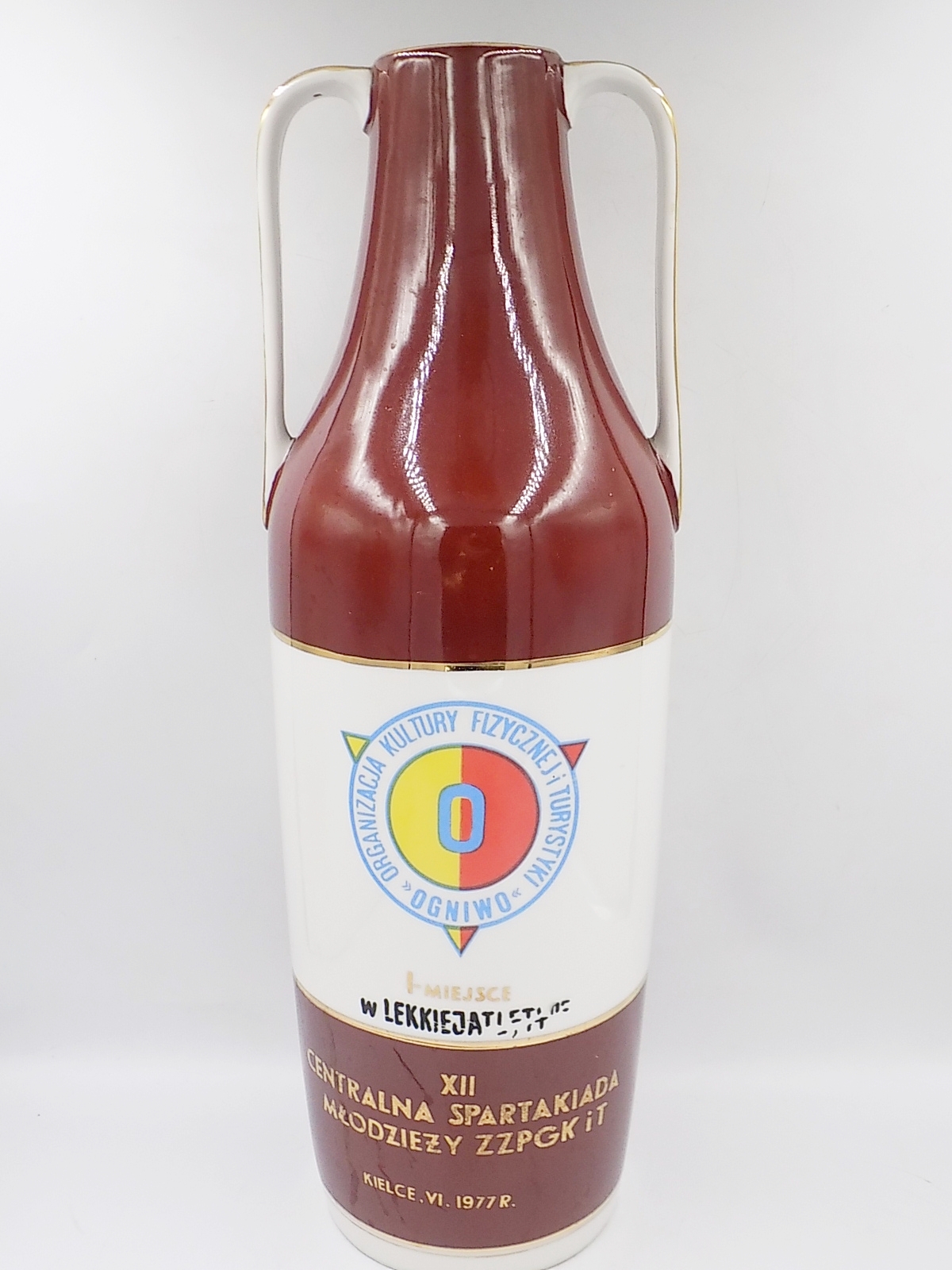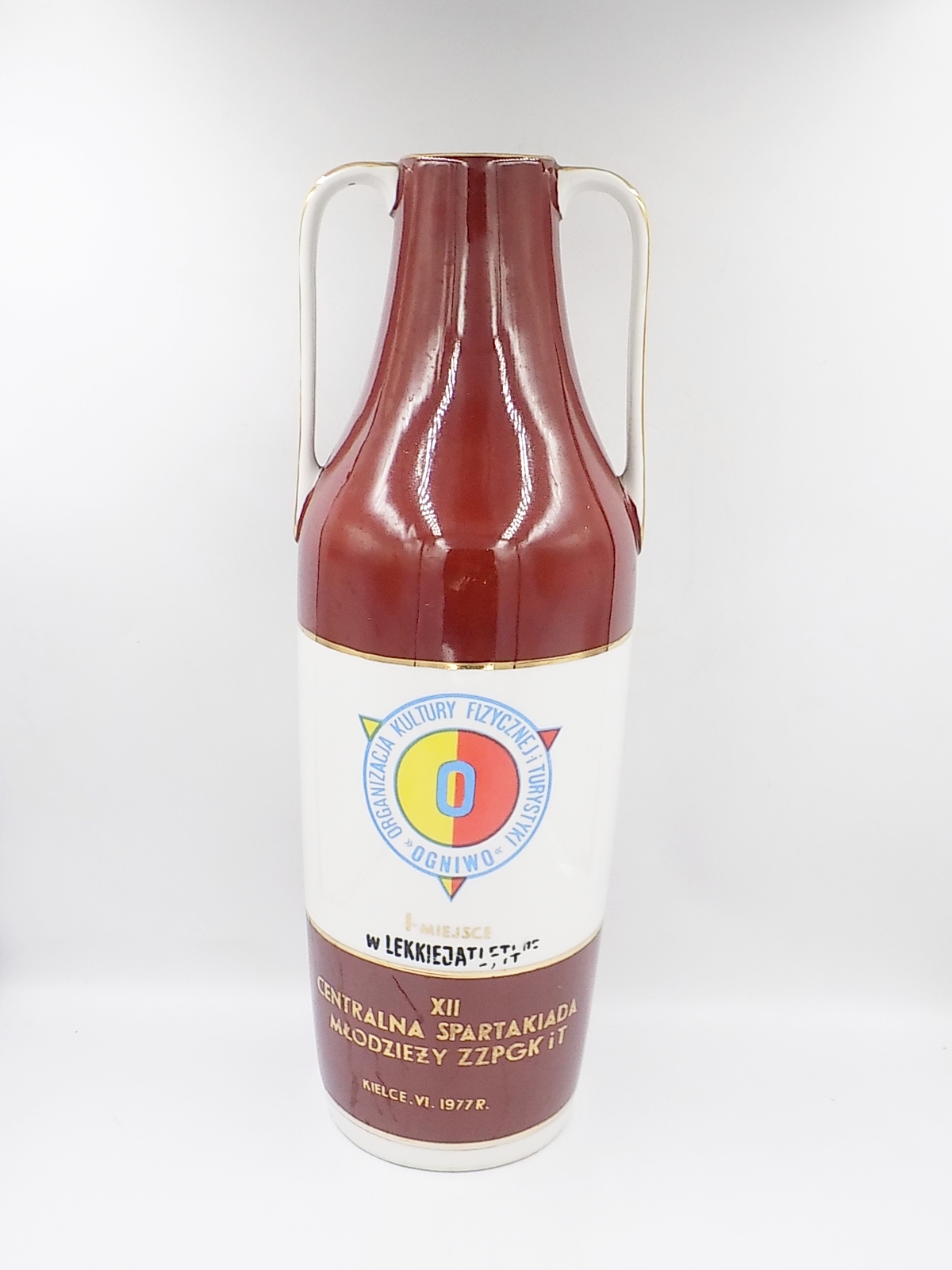 Wazon nagrodowy z 1977 r. Porcelana Ćmielów. Sygnowany. Wymiary; 48,5 x 16 cm.