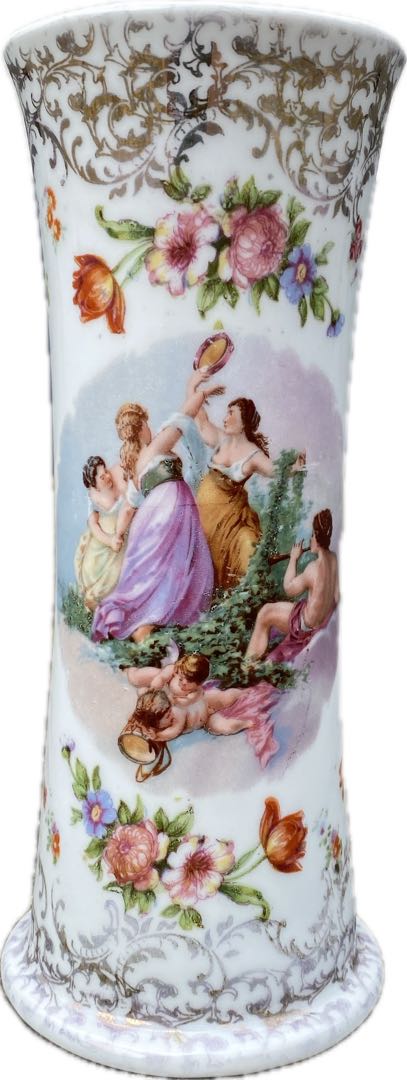 Porcelanowy wazon z wytwórni porcelany Schierholz & Sohn w Plaue Germany. Sygnatura stosowana w latach 1865-1917. Wymiary; wys.20 x 9 cm.