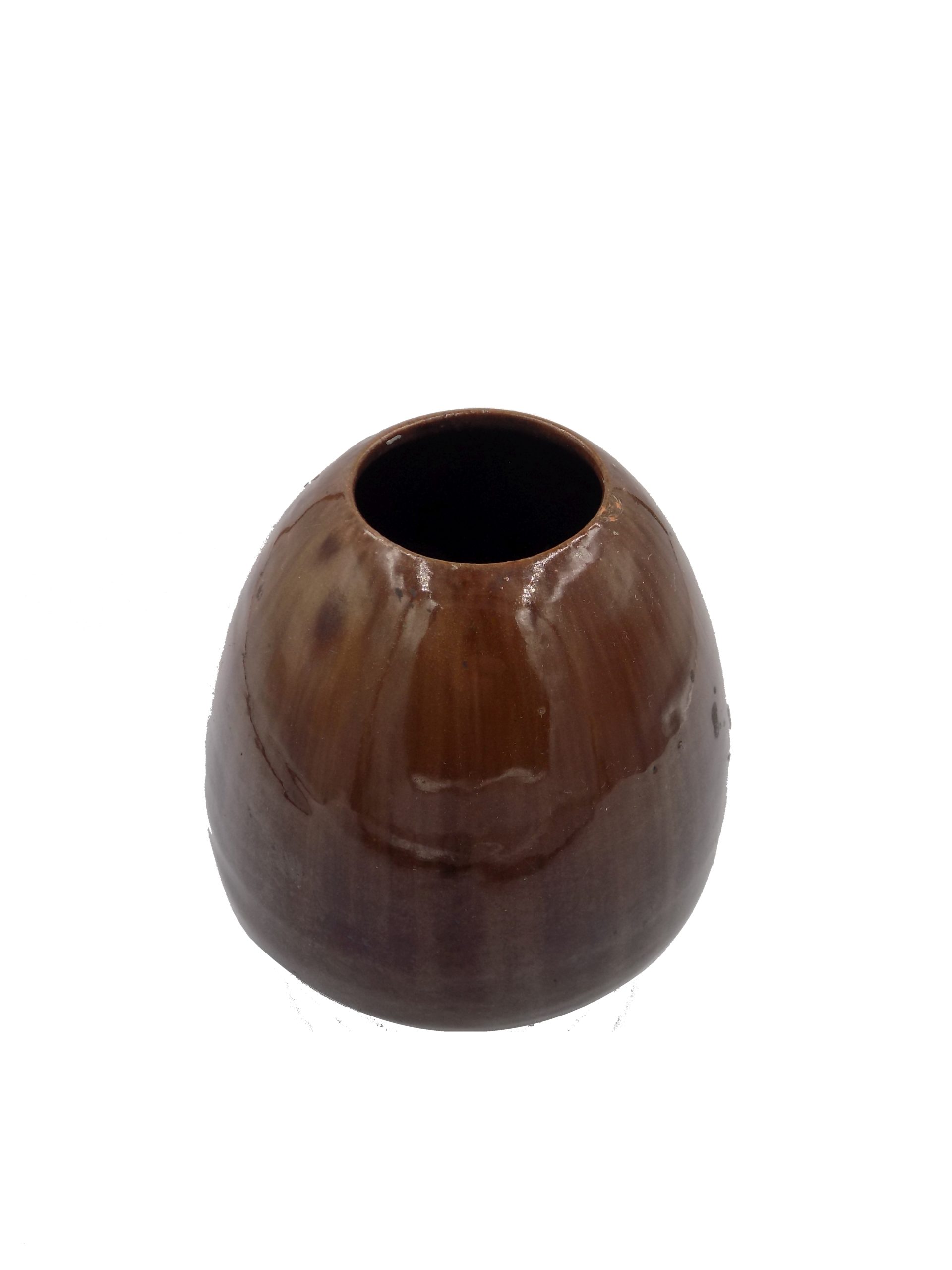 Glazurowany wazon z czerwonej glinki ze Spółdzielni Przyjaźń Włocławek z lat 60-tych. Wymiary; wys.15 x 12 cm.