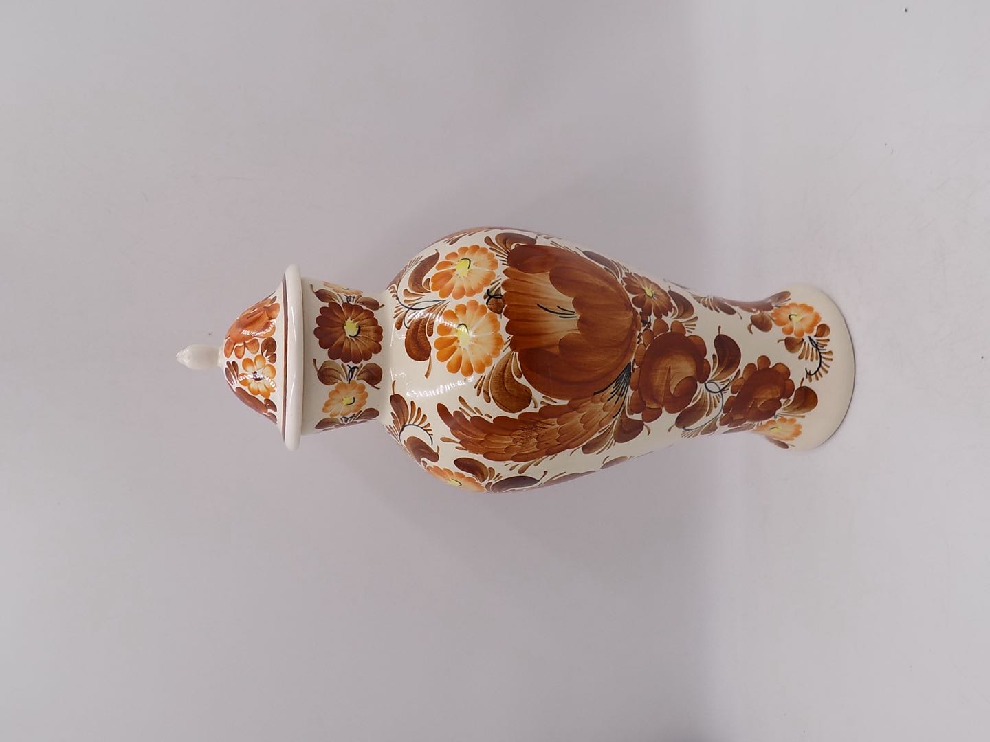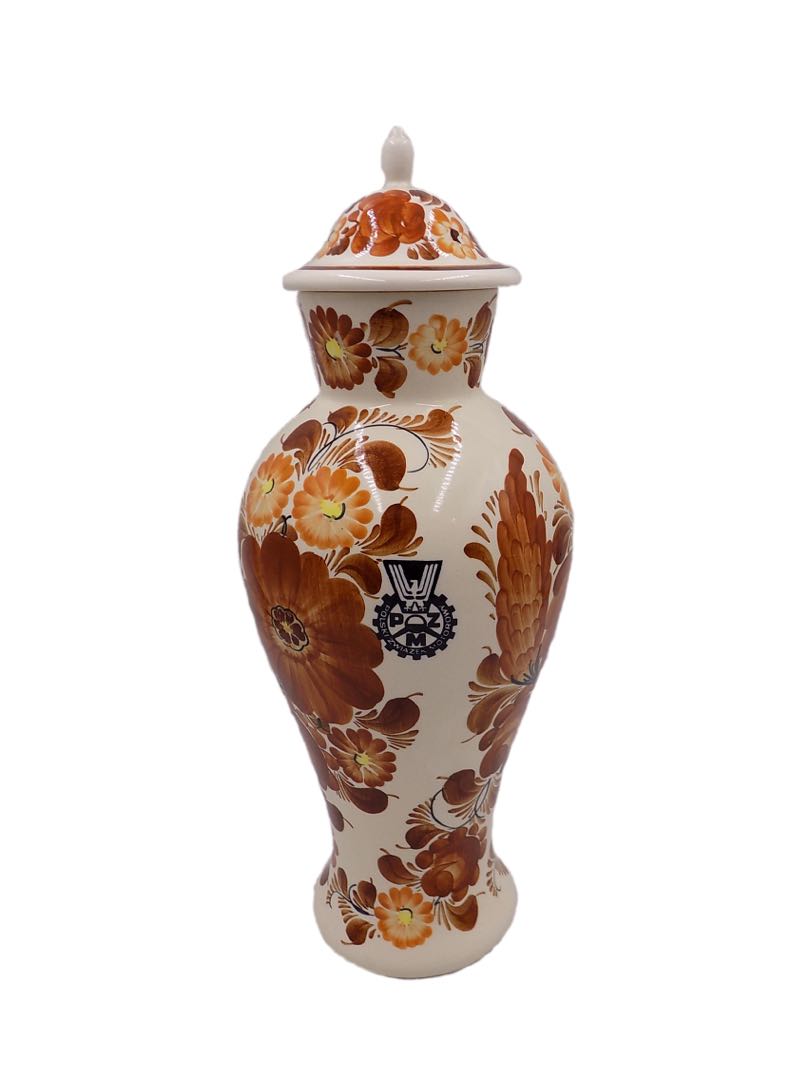 Fajansowy wazon z Włocławka z lat 70/80-tych. Sygnowany. Ręcznie malowany przez Bożenę Kolasińską. Wzór 629/4. Wymiary; 45 cm.