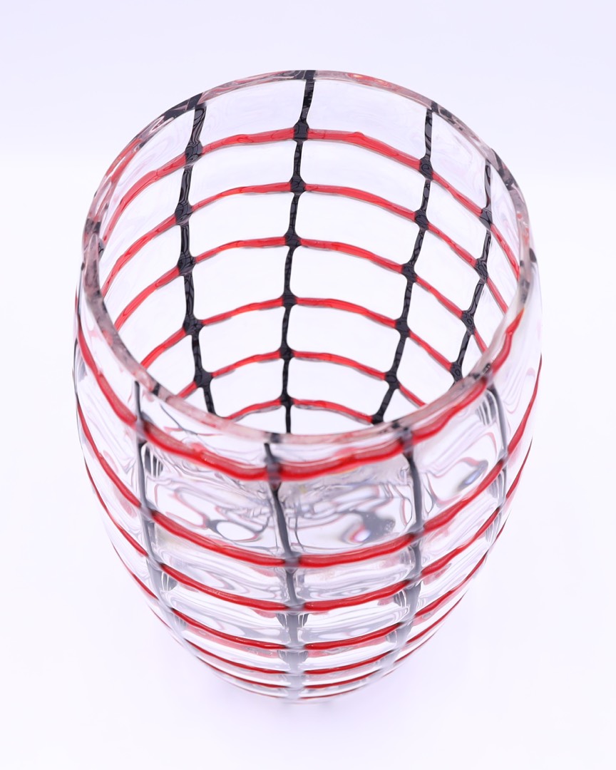 Wyjątkowy produkt będący prawdziwym hołdem dla estetyki i rzemiosła artystycznego - Wazon Pleciony Stanisław Macha HS Ząbkowice. Ten wyjątkowy wazon ożywia przestrzeń dzięki unikalnemu połączeniu pionowej i poziomej plecionki, nawiązującej do charakterystycznego stylu Huty Szkła Ząbkowice z okresu PRL.