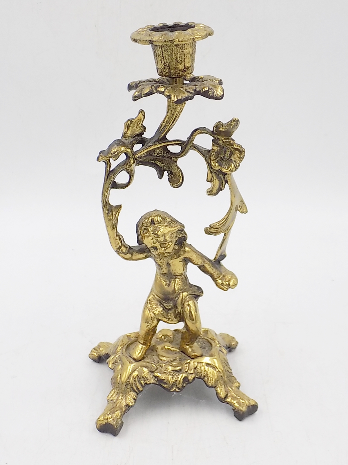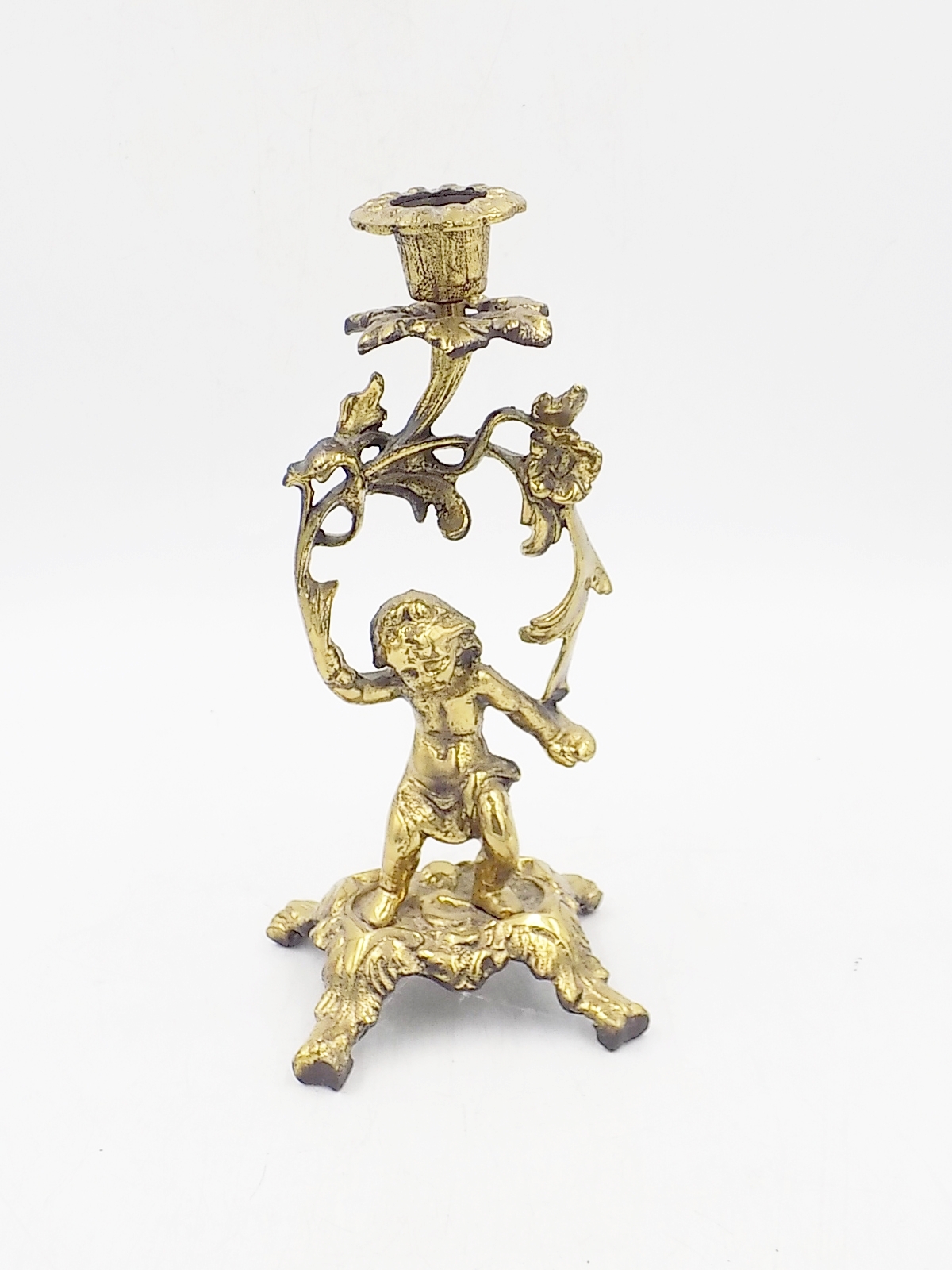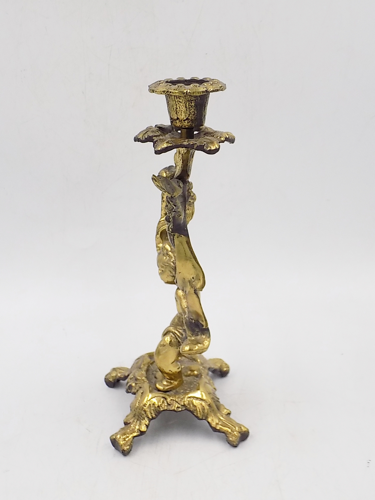 Świecznik z mosiądzu z II poł.XX w. Wymiary; wys.20 x 8,5 x 7,5 cm