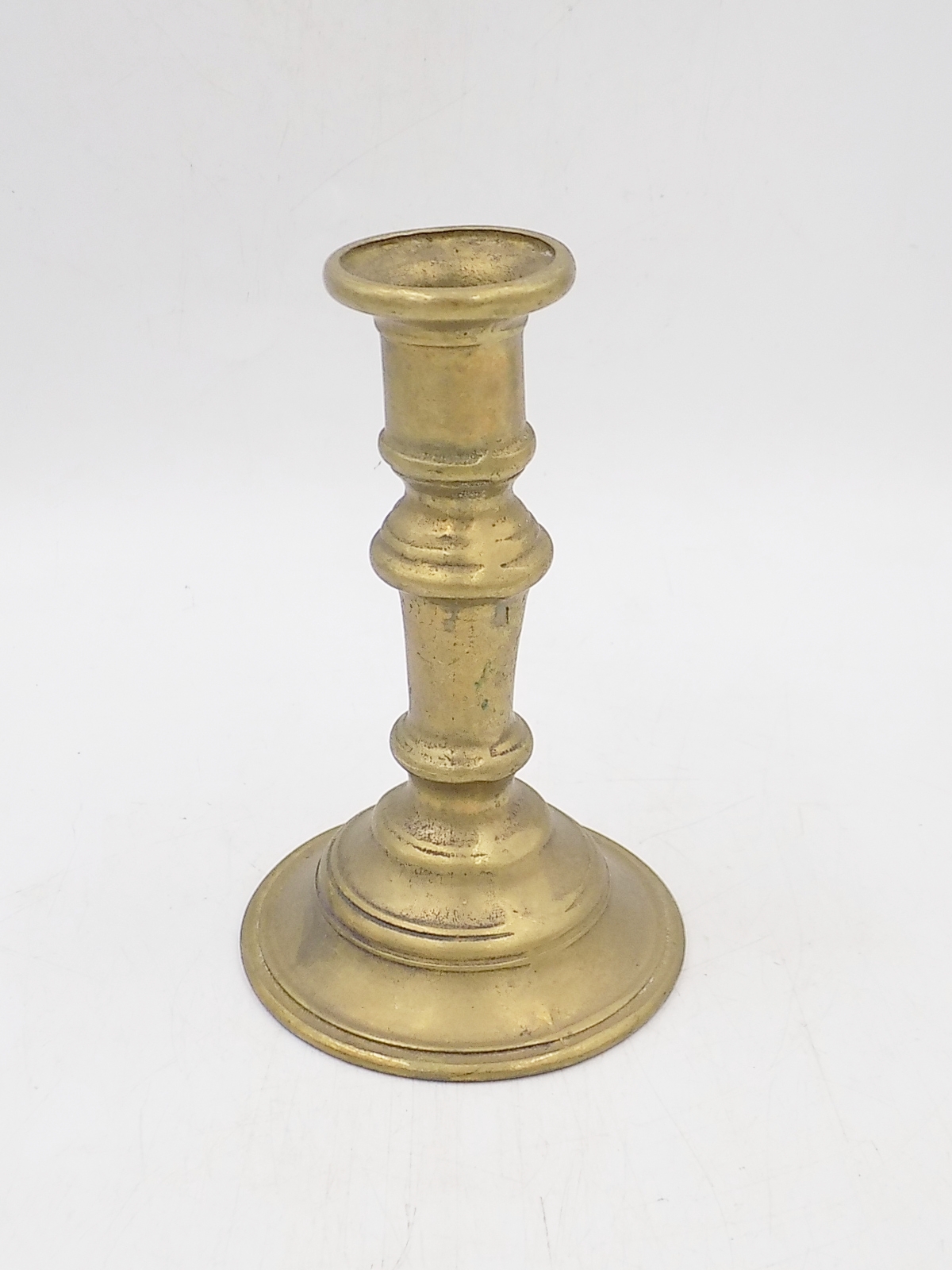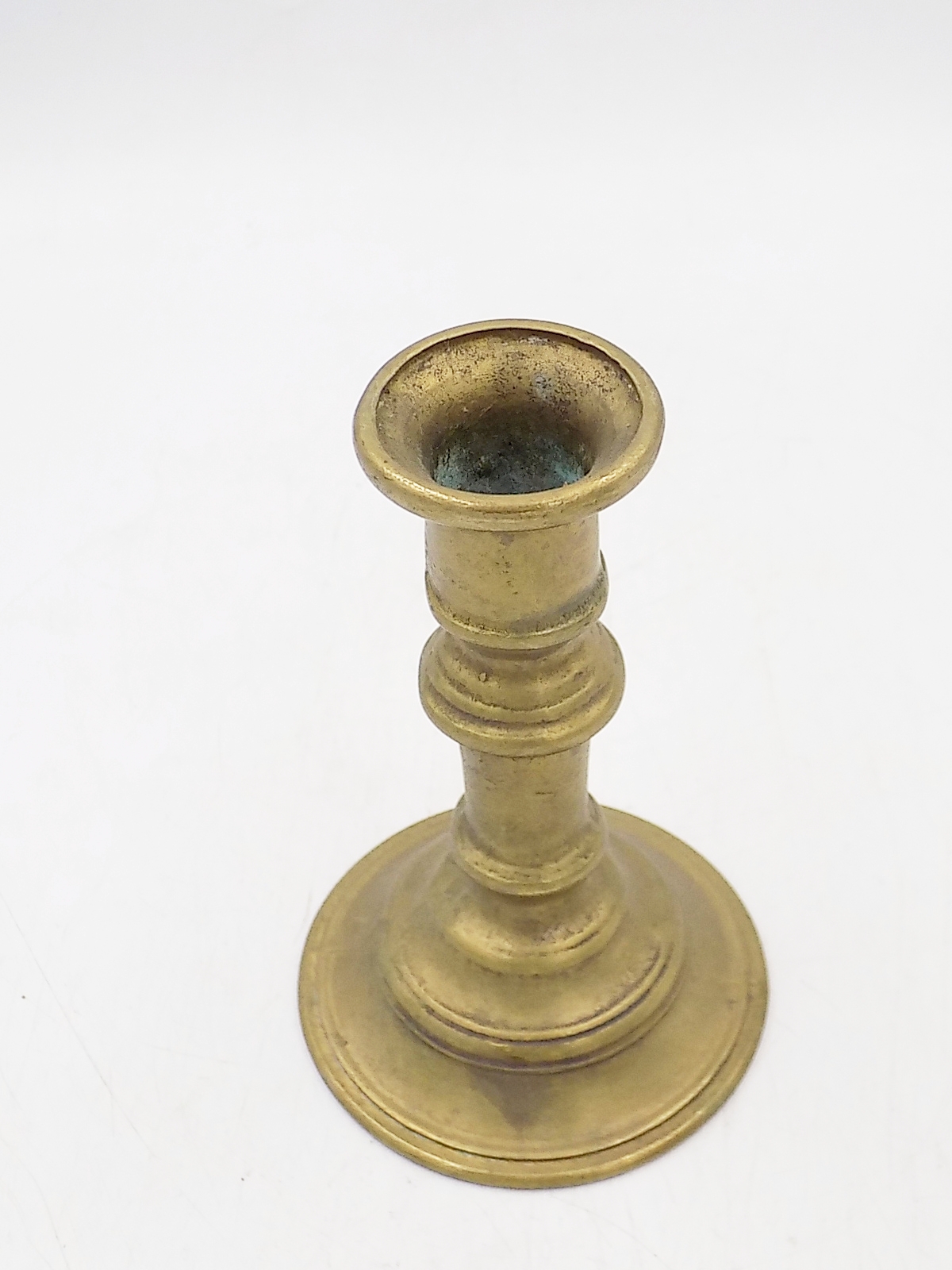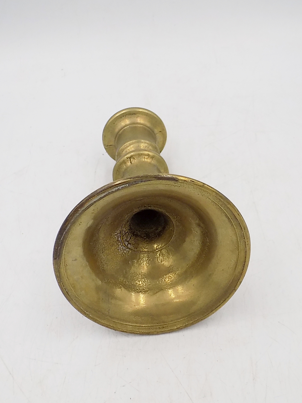 Świecznik z mosiądzu z II poł.XX w. Wymiary; wys.13 x 8,5 cm.